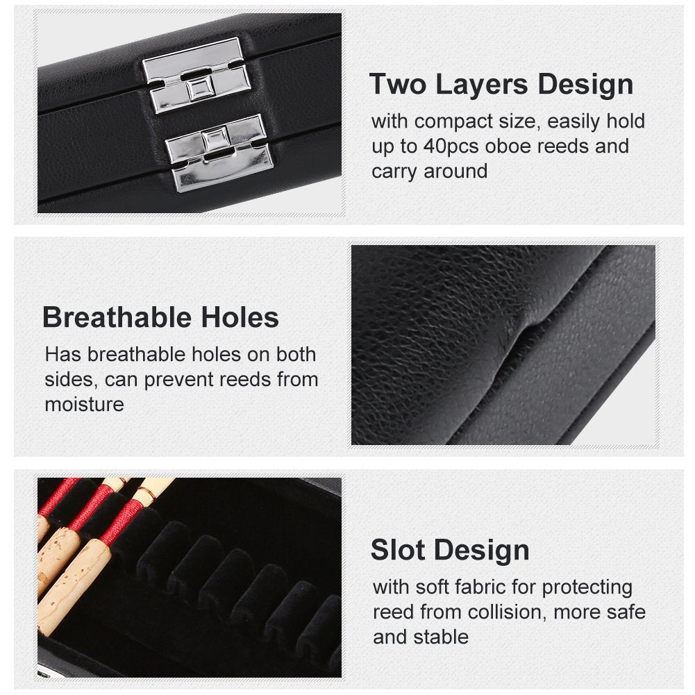 • CONVENIENT STORING AND CARRYING: Two layers design with compact size and lightweight, easily hold up to 40pcs oboe reeds and carry around.