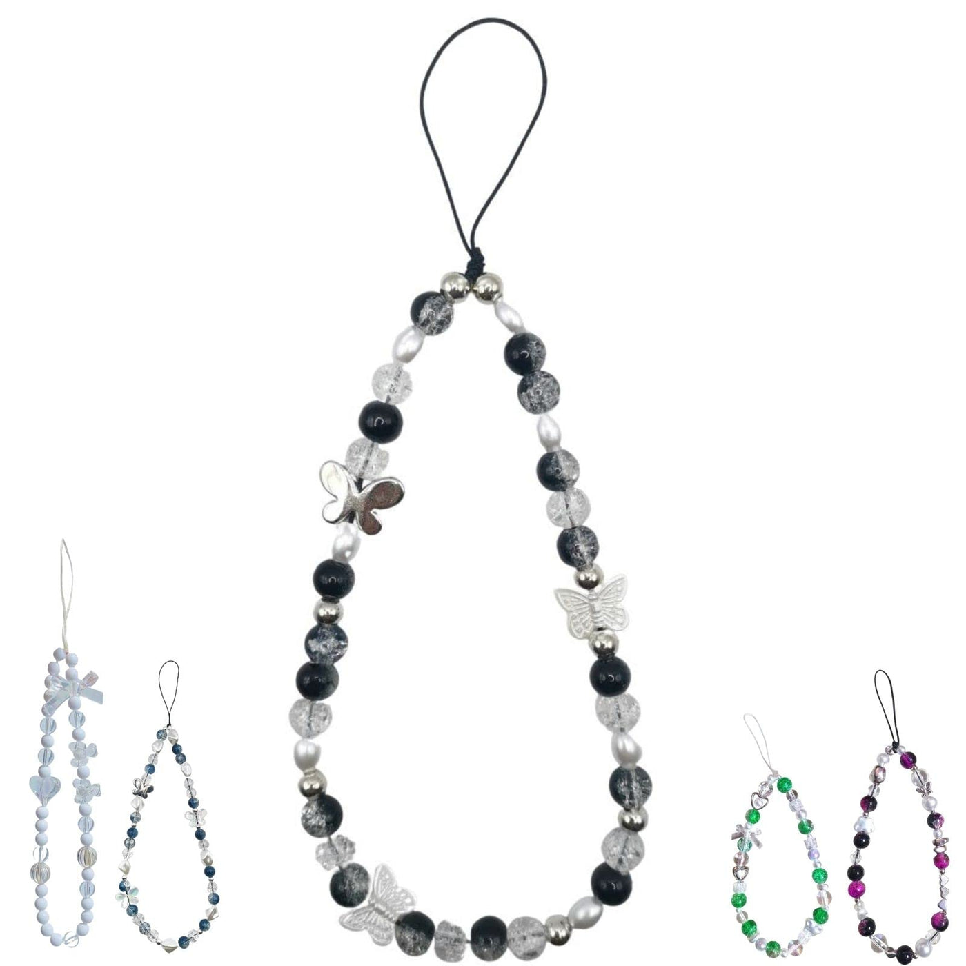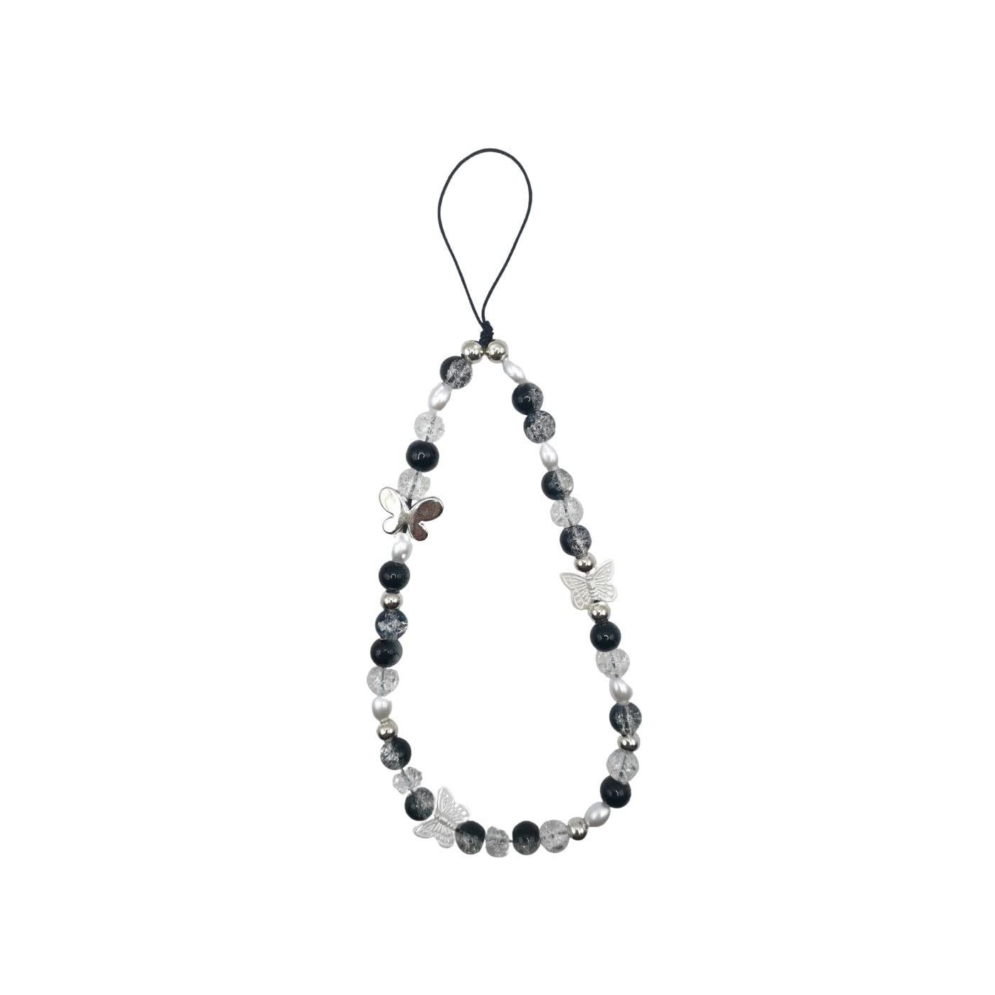 1-2 PCS Butterfly Y2K Beaded Phone Charm Black White Purple Blue Green Cute Charms Cell Phone Lanyard Strap Handmade Acrylic Flower Wrist Beads Chain Sweet Gifts for Girls Women Black Butterfly