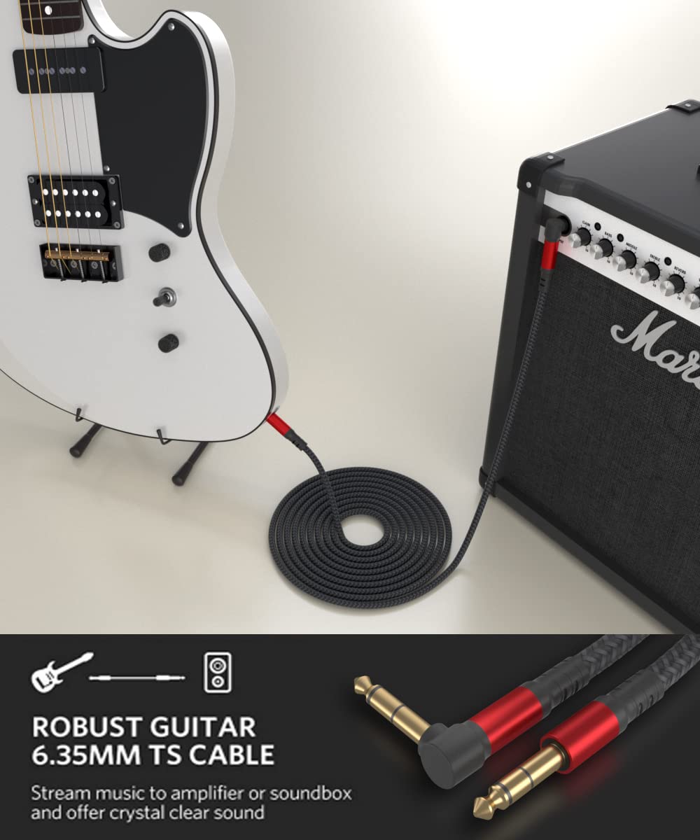 - Durable DesignThe 6.35mm Male Jack 1/4 TRS Cable is designed with right-angle connectors for a more stable and solid connection. Double braided nylon cover makes the guitar cord more wear-resistant and scratch-resistant, soft and tangle-free.