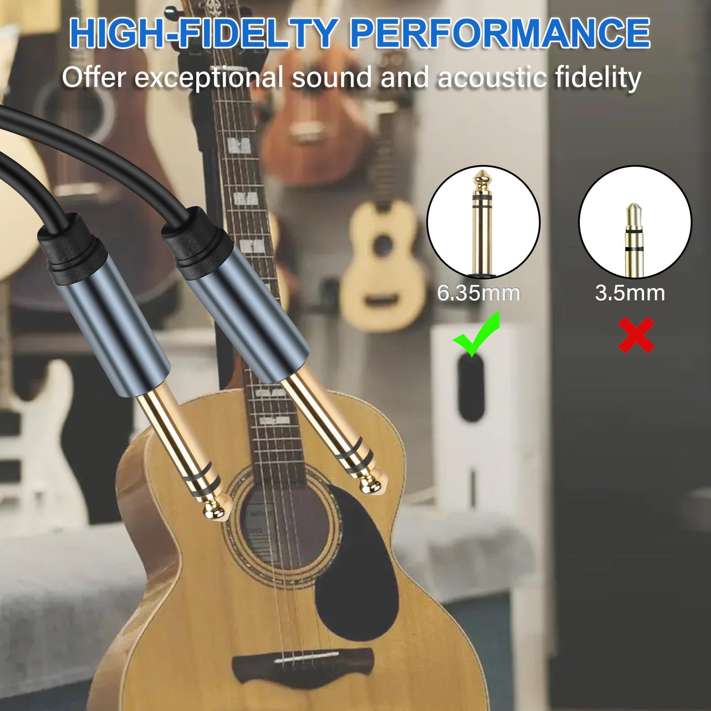 - High Compatibility6.35 mm 1/4" TRS Interconnect cable for guitars, microphones, keyboards, electric guitars, basses, keyboards, electronic drums, amplifiers, audio mixers, speakers, recording studios, and other professional audio equipment with 1/4" inputs.