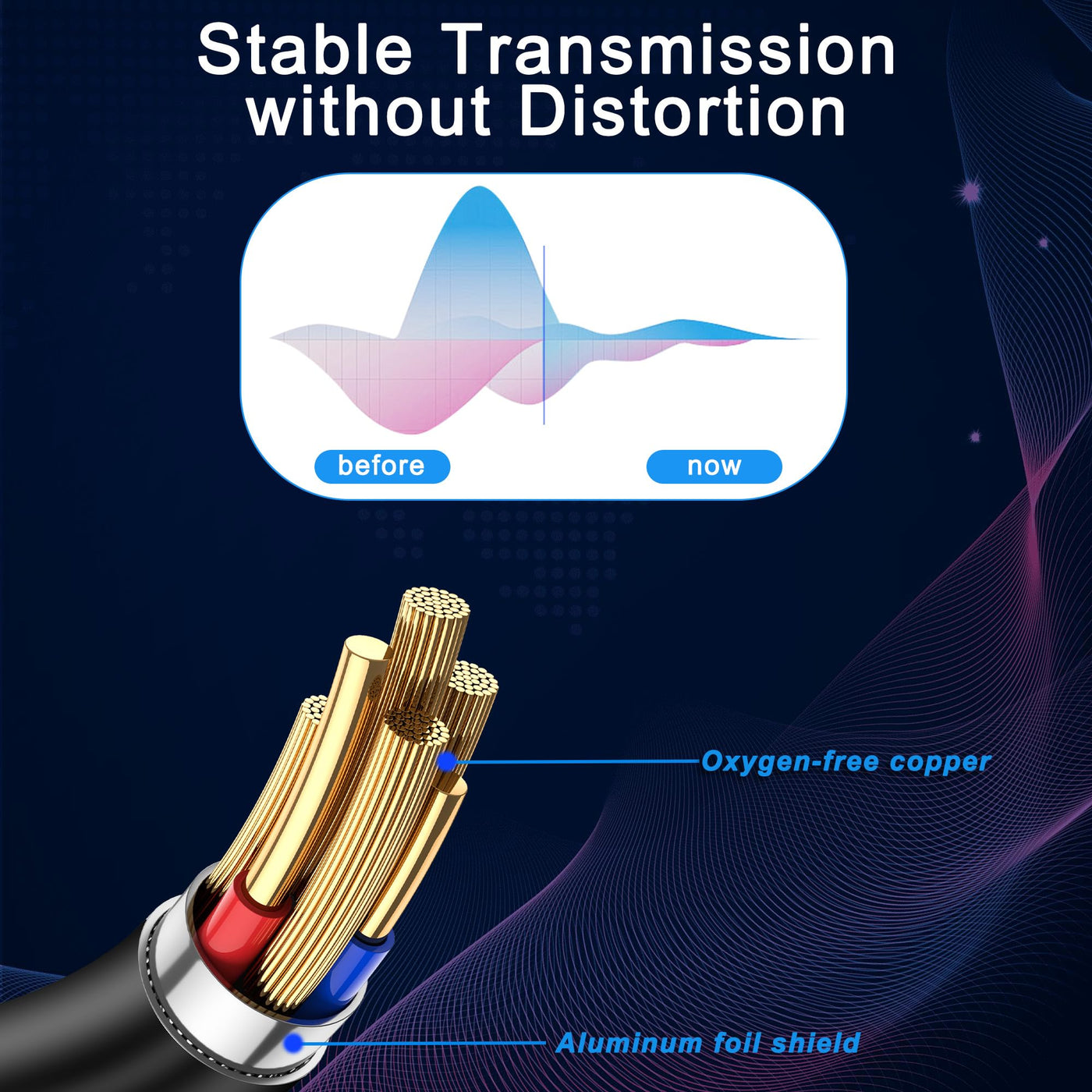 - Perfect Sound EffectsOxygen-free copper conductors provide excellent signal transmission and maximum electrical conductivity, double shielding layer, free from interference or noise, ensuring clear audio quality