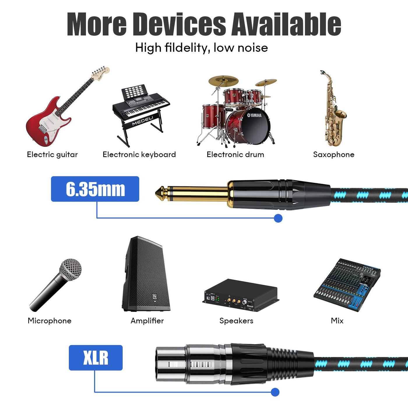 - The XLR connector is a high quality metal shielded type with positive locking into the microphone; The heavy duty 6.35mm TRS connector has 360 degree easy-grip treads for frequent unplugging and durability.