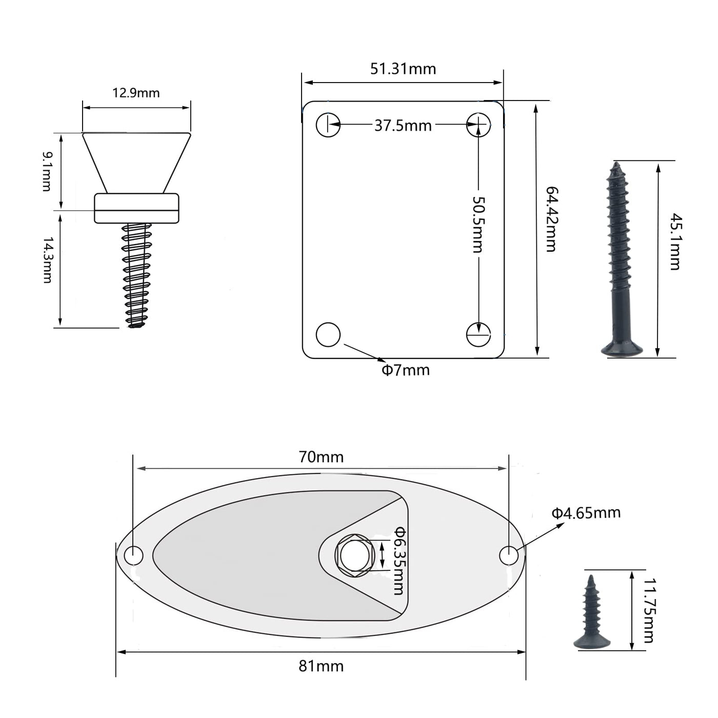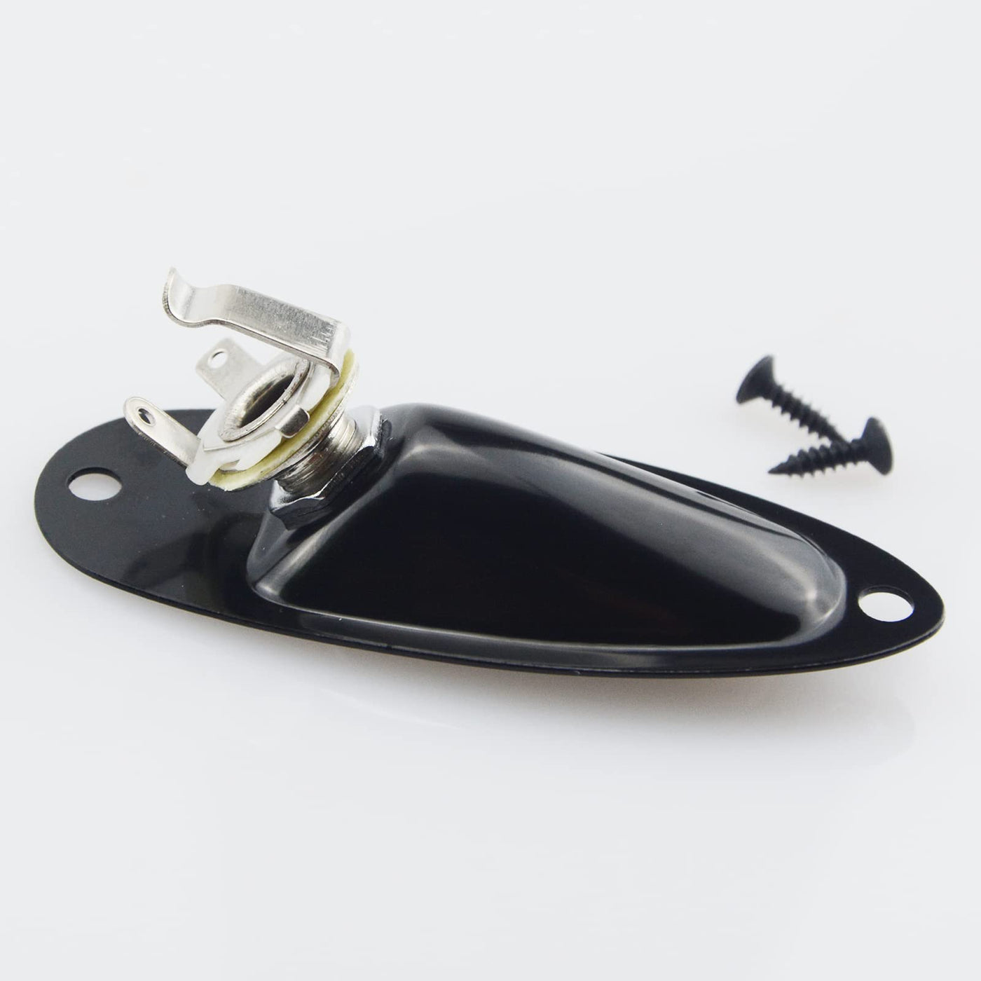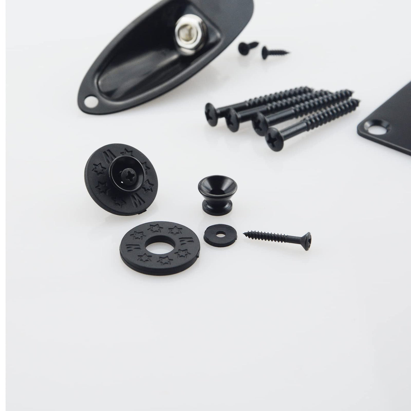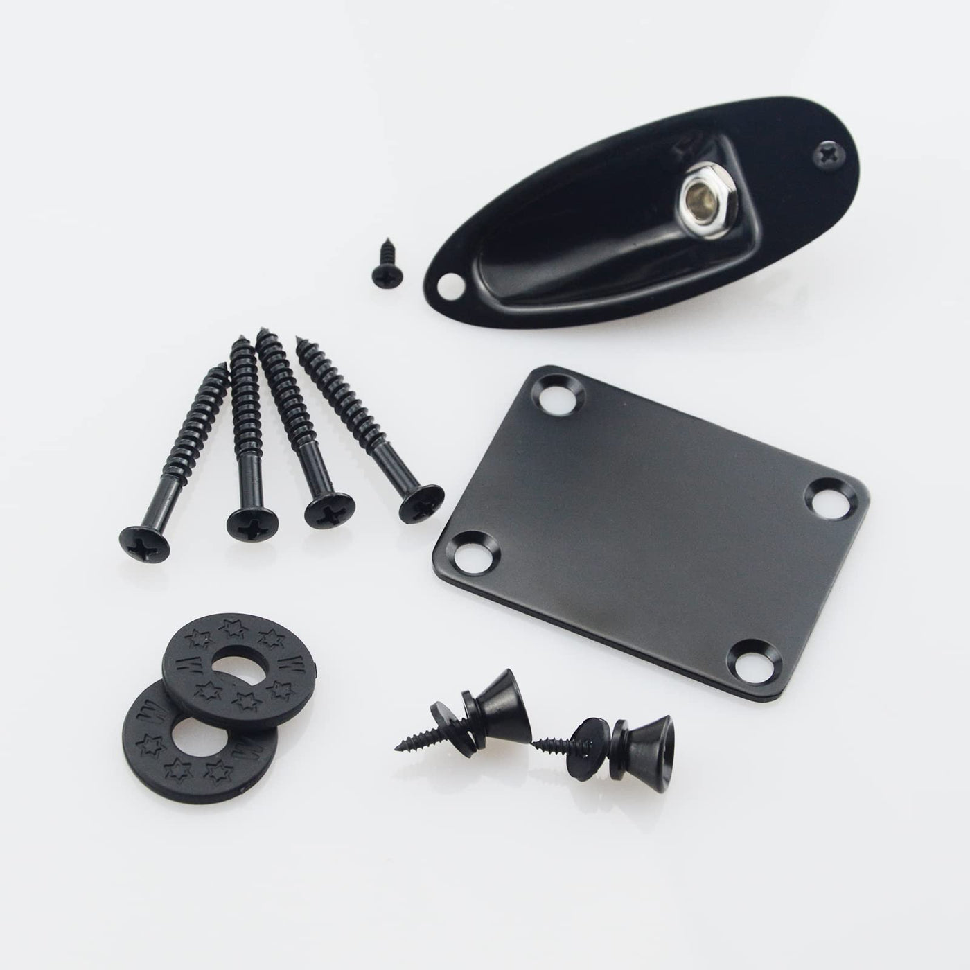 1/4"(6.35mm) Black Oval Guitar Input Output Jack Plate Socket,Guitar Neck Joint Ferrules Bushings with Screws for Fender Strat Tele Guitar or Bass,2PC Guitar Strap Buttons with Strap Blocks