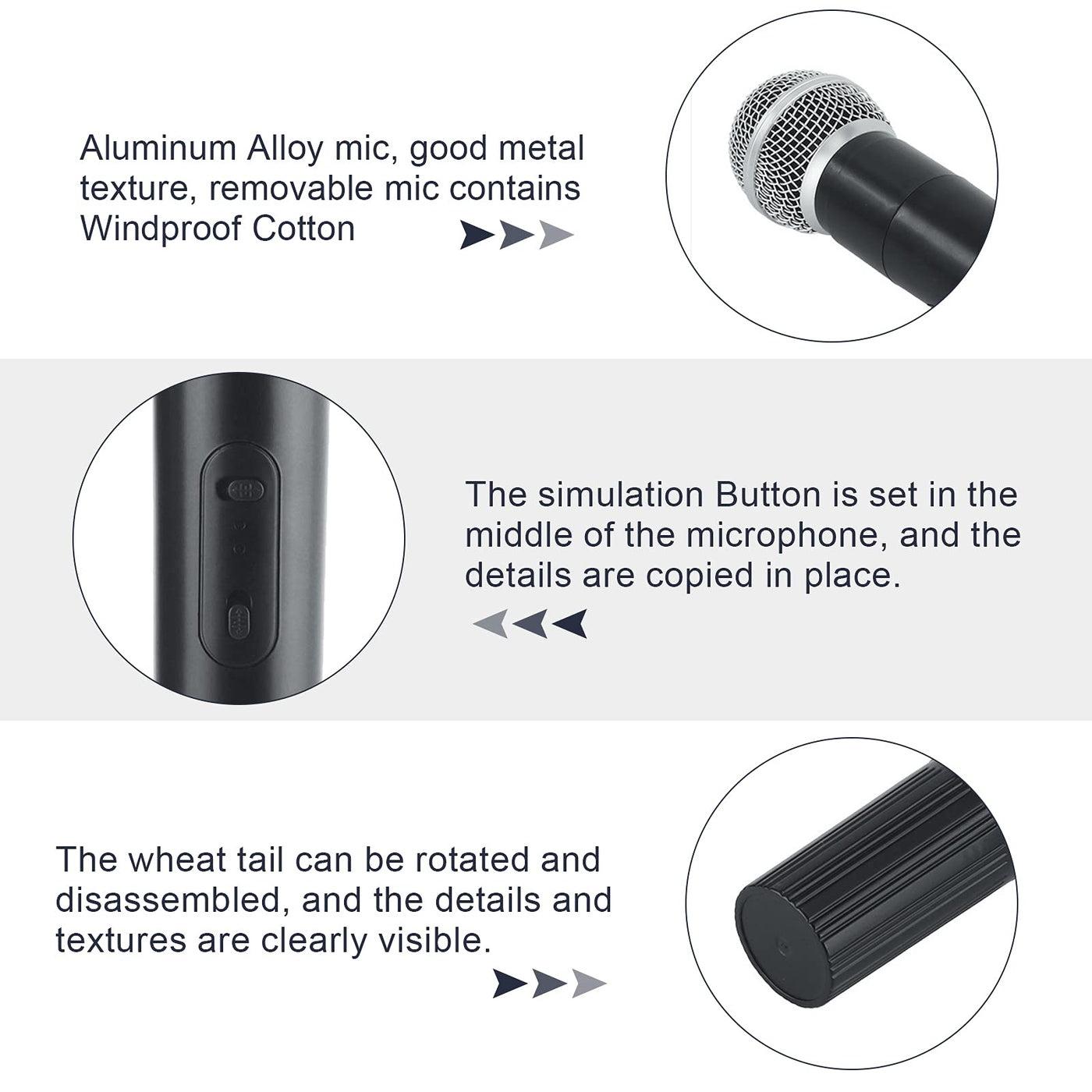 - Plastic Microphone Toy- This is a Prop only, not a real microphone. Aluminium alloy mesh head and plastic body, very realistic and fall resistance.This fake microphone is lightweight and has a compact size, you can carry it everywhere at ease.