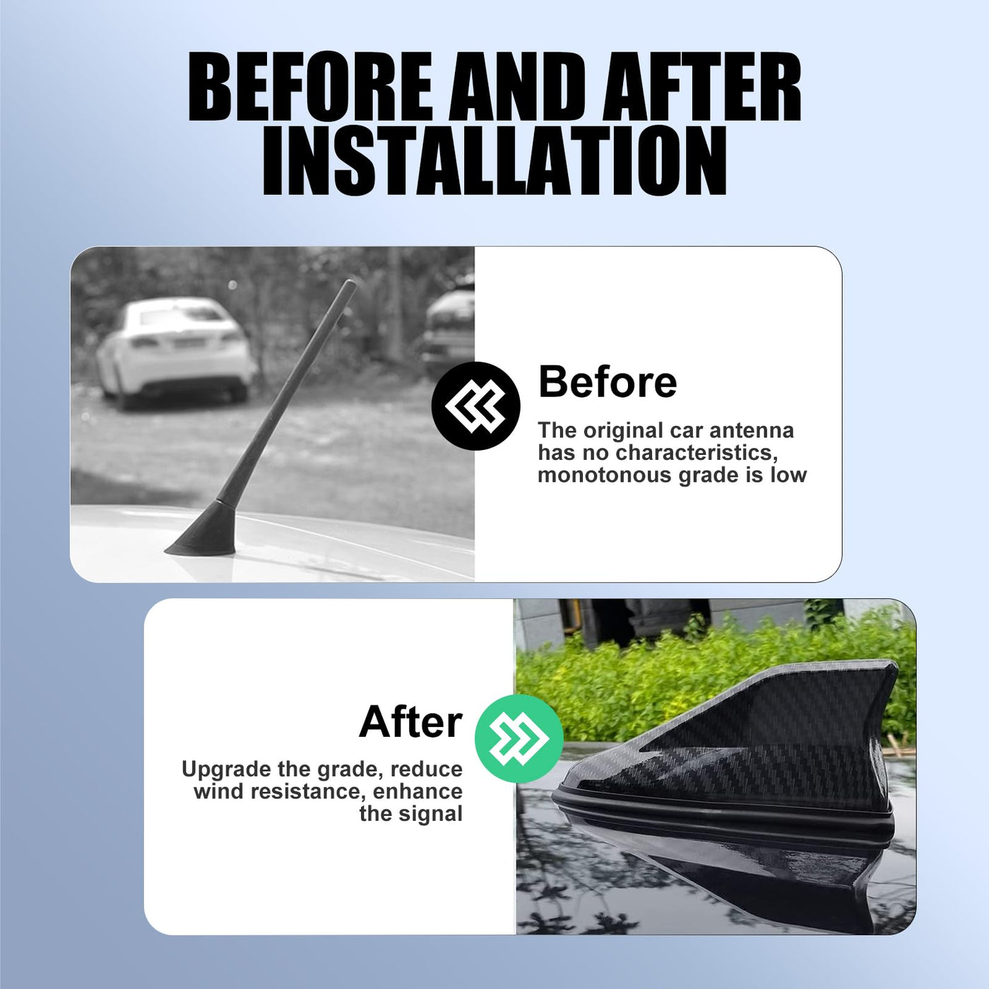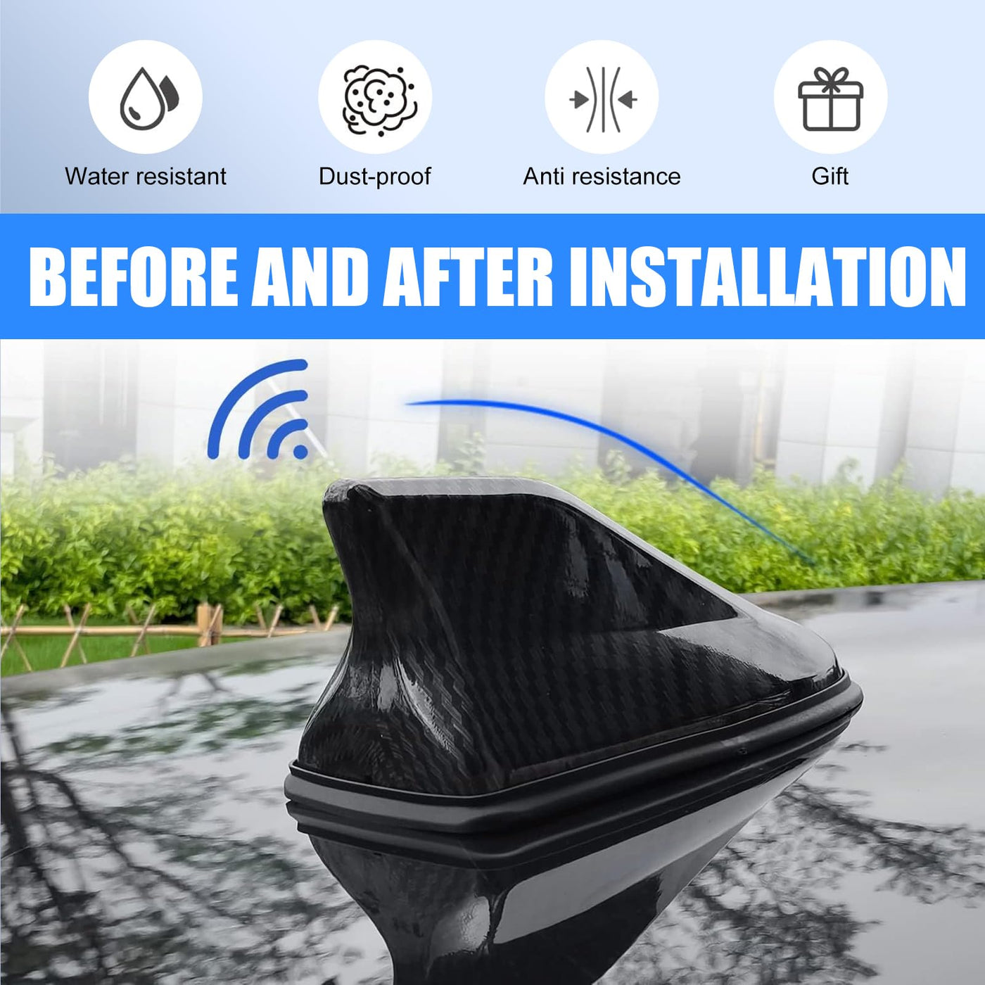 - Premium Material: Made of excellent ABS material and paint baking technology, the shark fin antenna is waterproof, dust-proof, anti-exposure, sturdy and drop-proof. Built-in pure copper antenna and chip, it can better accept the AM/FM signal and make the signal stable and strong.