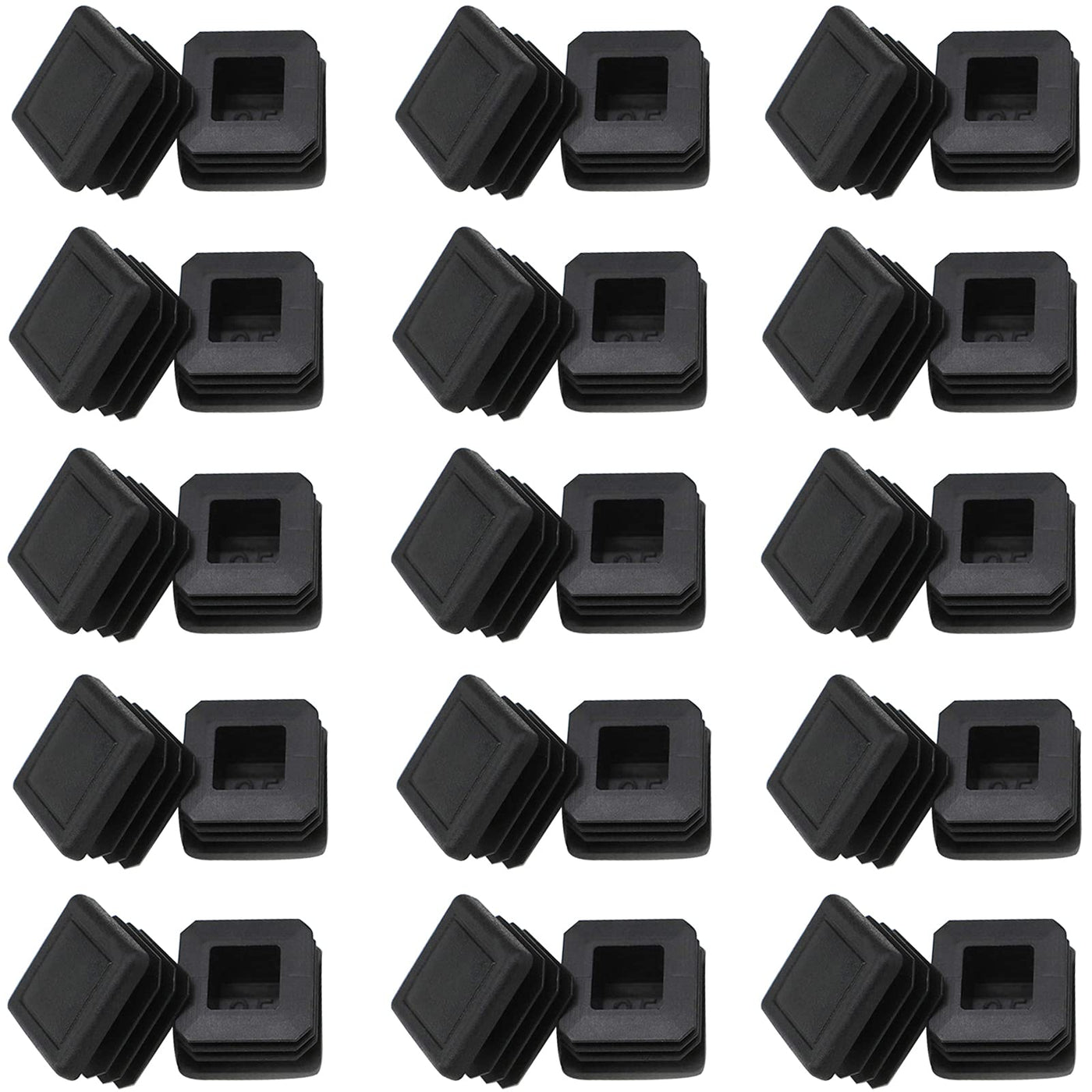 1" Square Tubing Plug End Caps, 30 Pack Tubing Post End Cap, 25mm x 25mm Black Plastic Square Plugs, Chair Glide Floor Protector