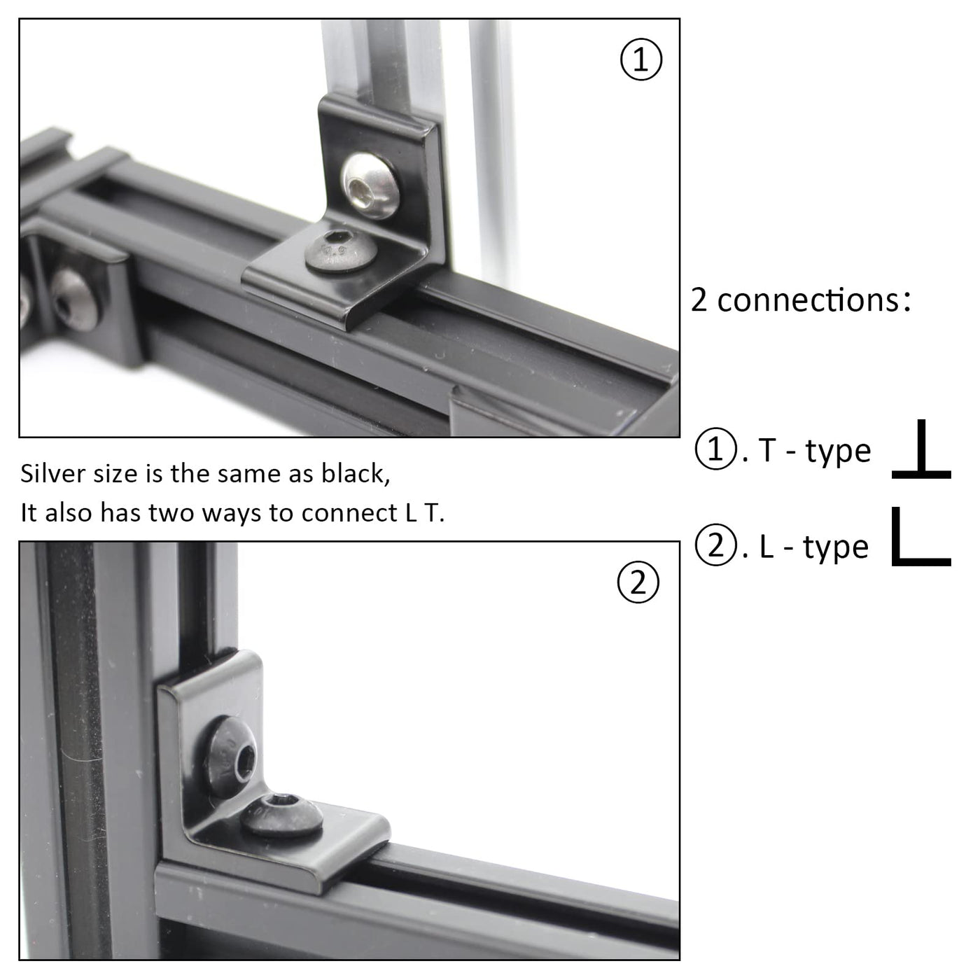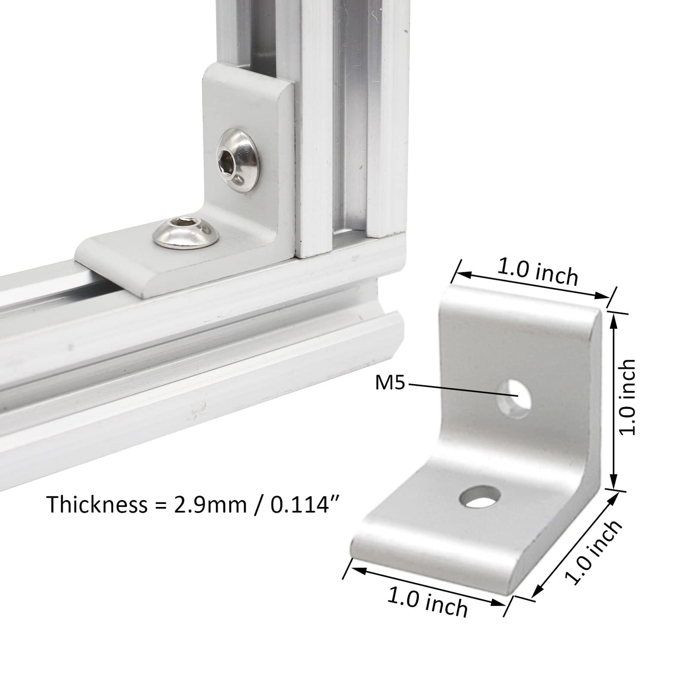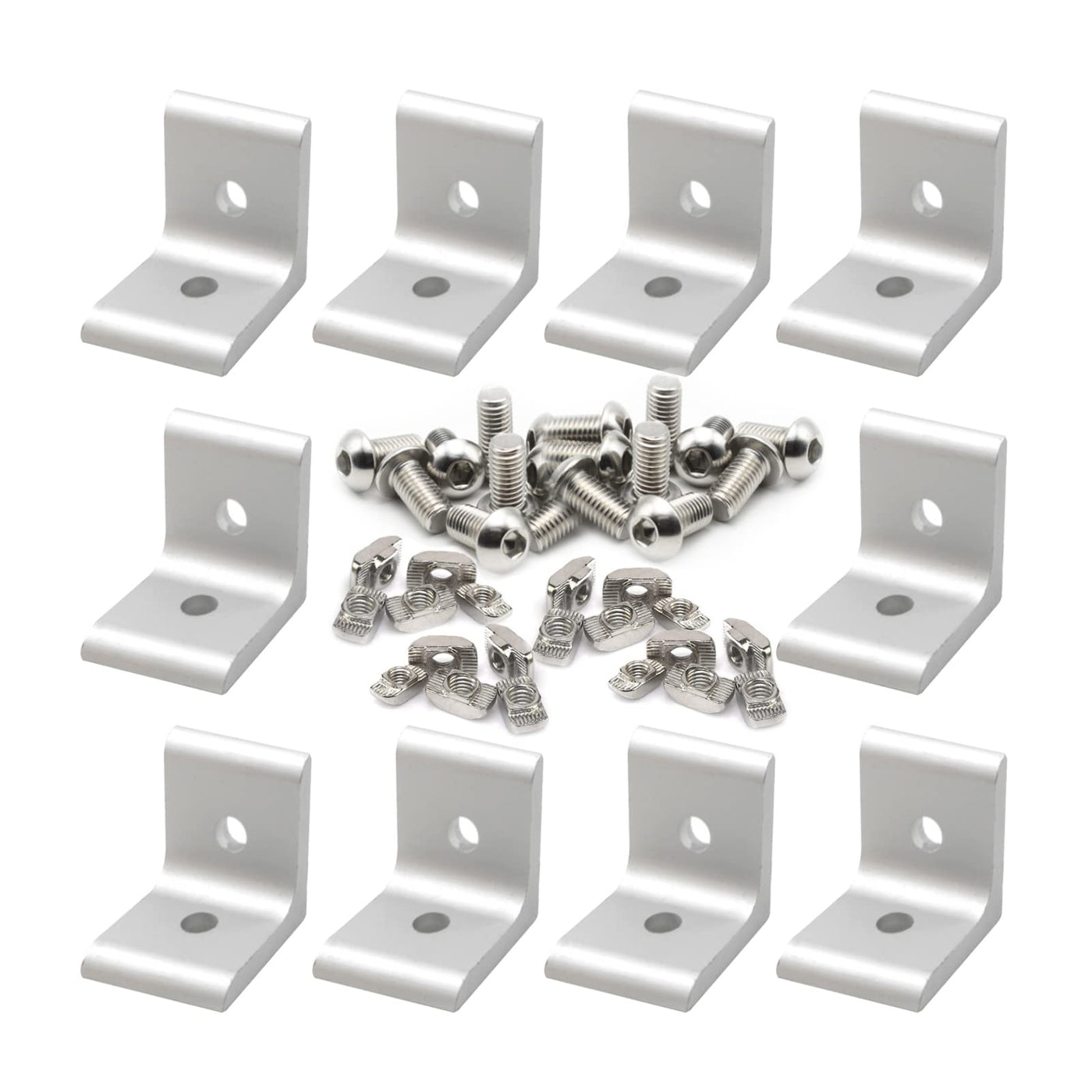 - Package Content: 10pcs 1 inch 10 Series 90 Degree Aluminum Corner Bracket, 20pcs M5 T-slot Nuts, 20pcs M5 Hex Socket Cap Screw Bolt