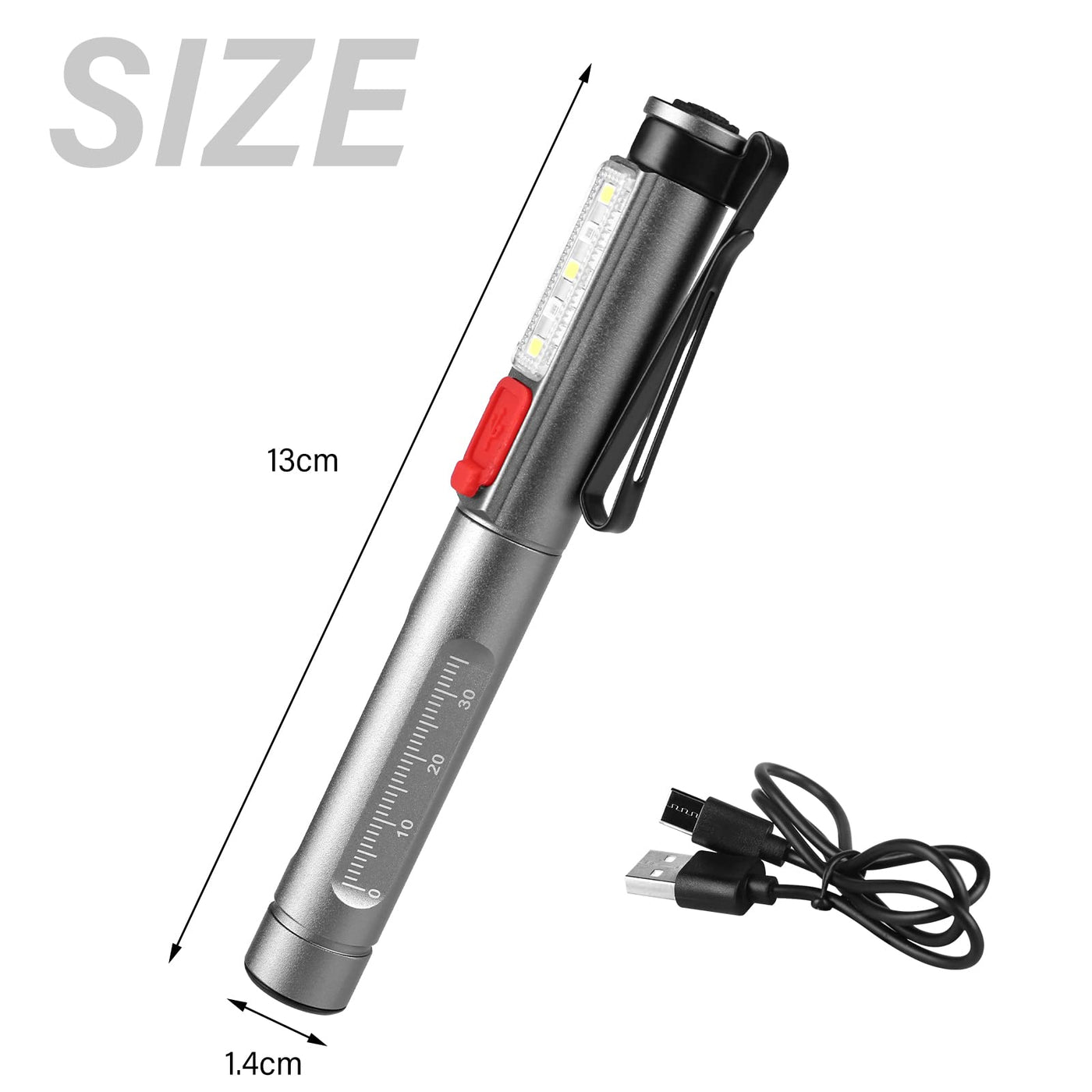 - Rechargeable USB: This LED pen light is an integrated rechargeable USB design. Pupil light charging is extremely convenient. No data cable required, simply remove the cap, plug the USB plug into the power bank, adapter or computer for charging.