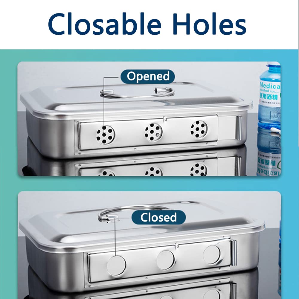 • (Premium material) The storage box for surgical instruments is made of high-quality 304 stainless steel with polished surface, which is solid, heat resistant, corrosion resistant and durable.