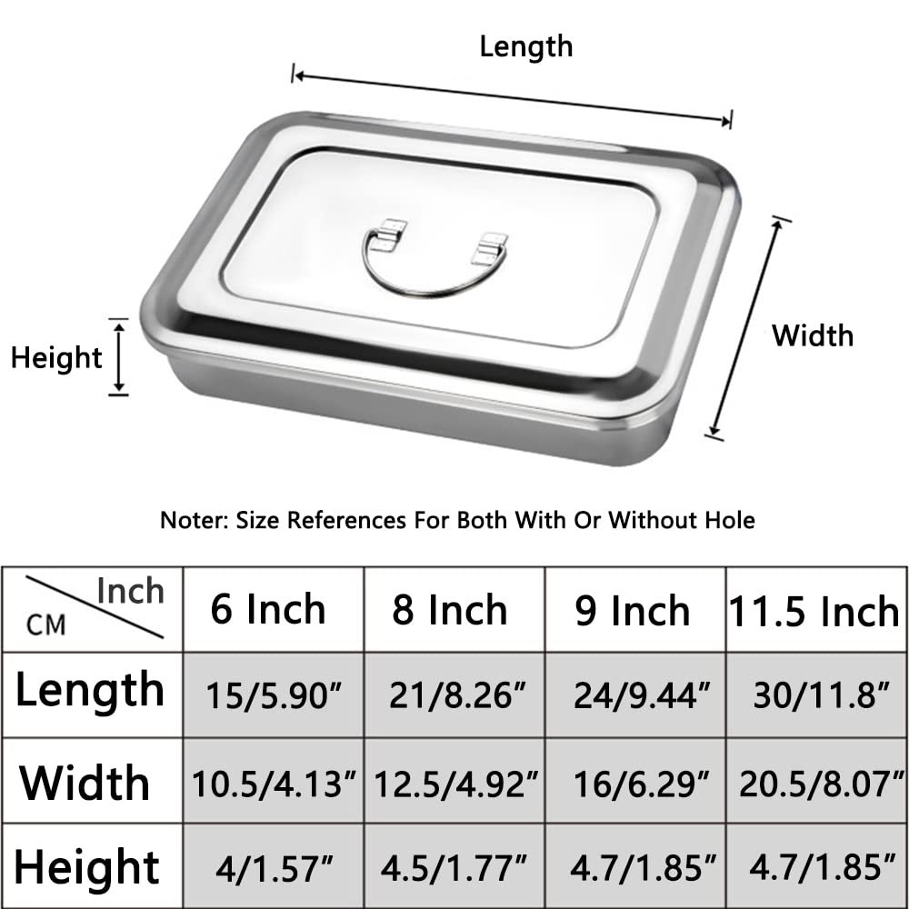 • Important 4 Diiferent Sizesdie. We offer you 8 options about this surgical disinfection bowl with lid, 4 sizes (6 inches, 8 inches, 9 inches and 11.5 inches) and two styles (with holes or without hole) for everyone.