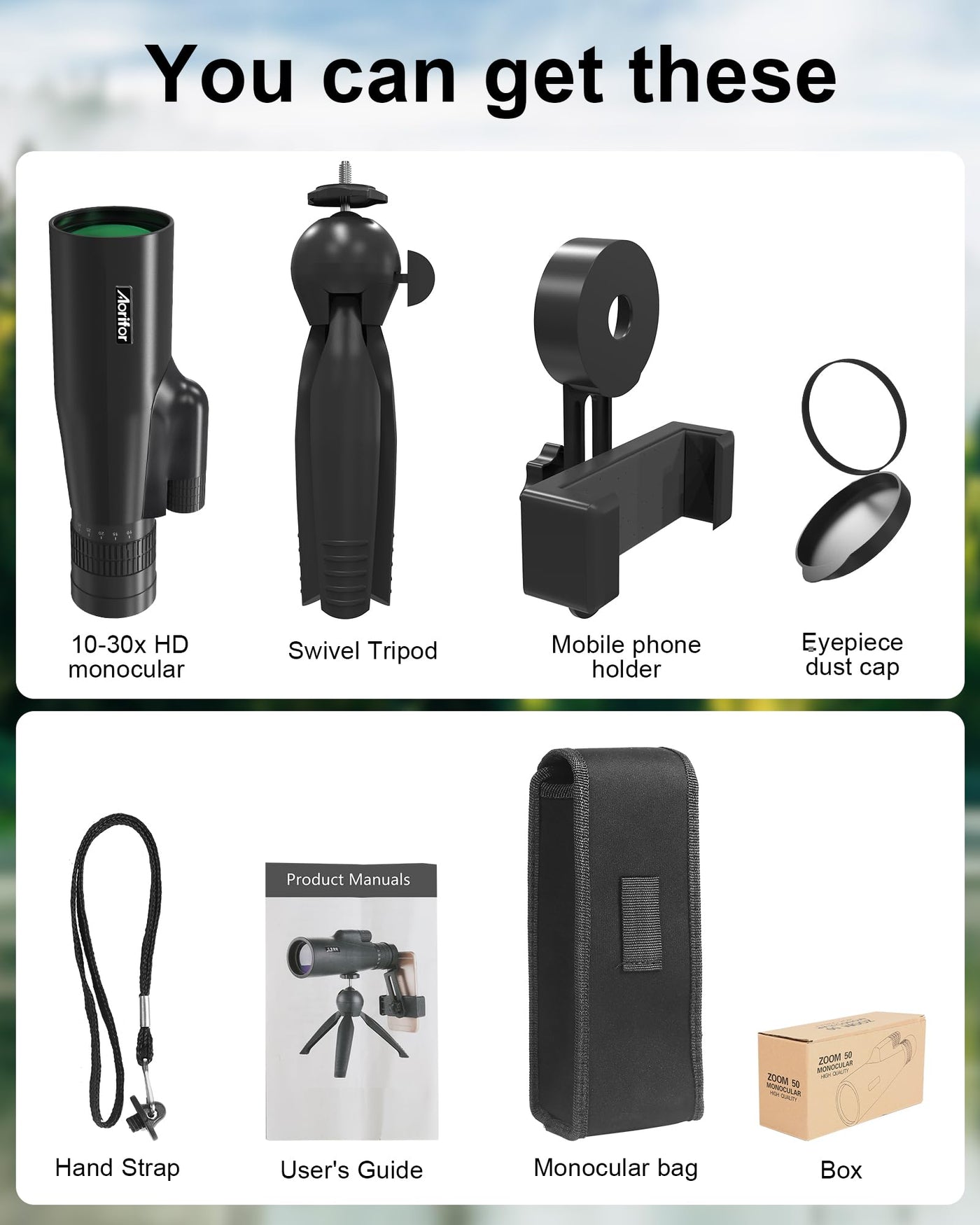 10-30x50 Monoculars for Adults High Powered with Smart Phone Holder & Upgraded Tripod, Starscope Monocular Military Grade for Outdoor Exploration, Bird Watching, and Scenic Viewing