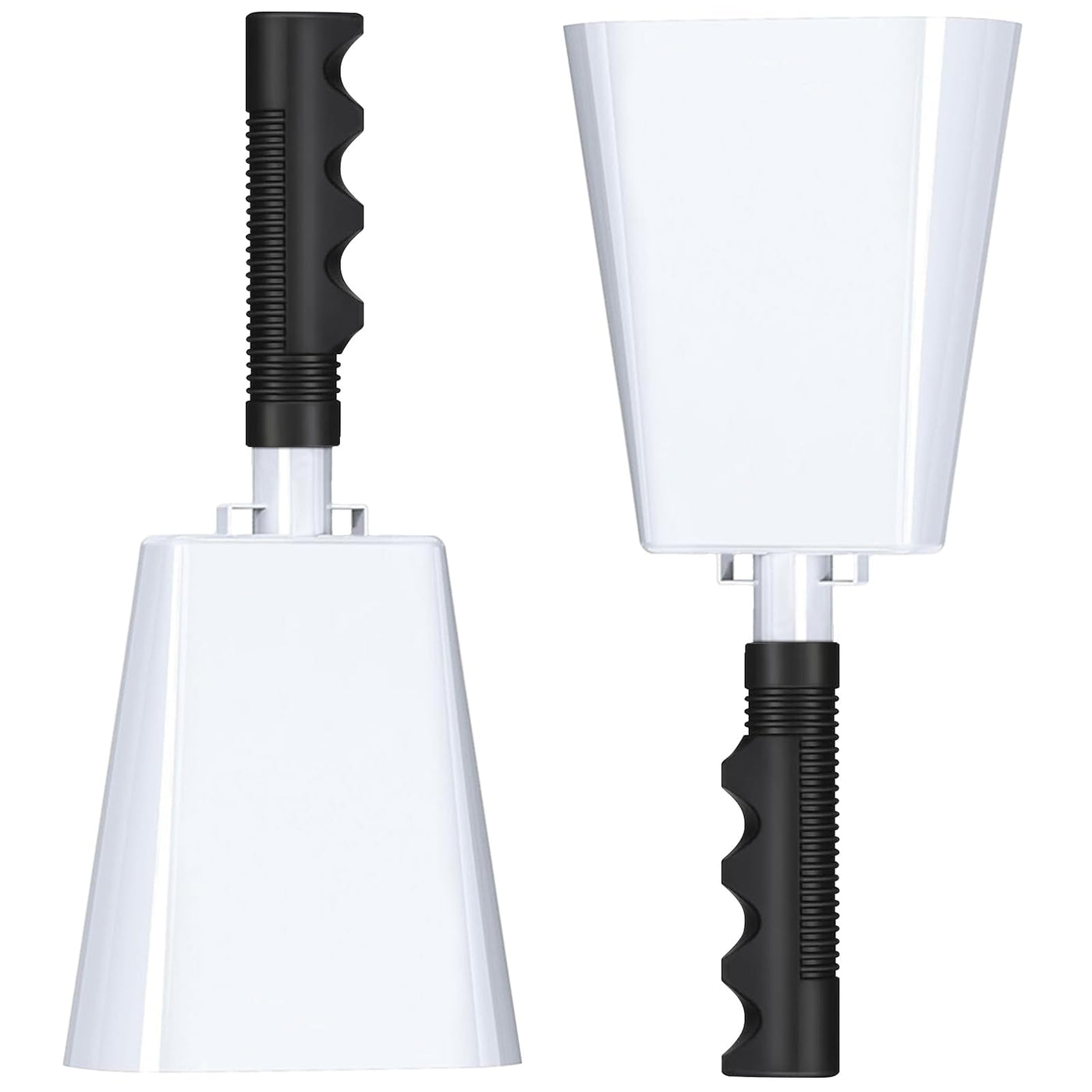 10 Inch Cowbell with Handle, Noise Maker Cow Bell, Steel Cheering Bell for Sports Events Graduations Party Chimes, Percussion Musical Instrument (White 2 PCS)