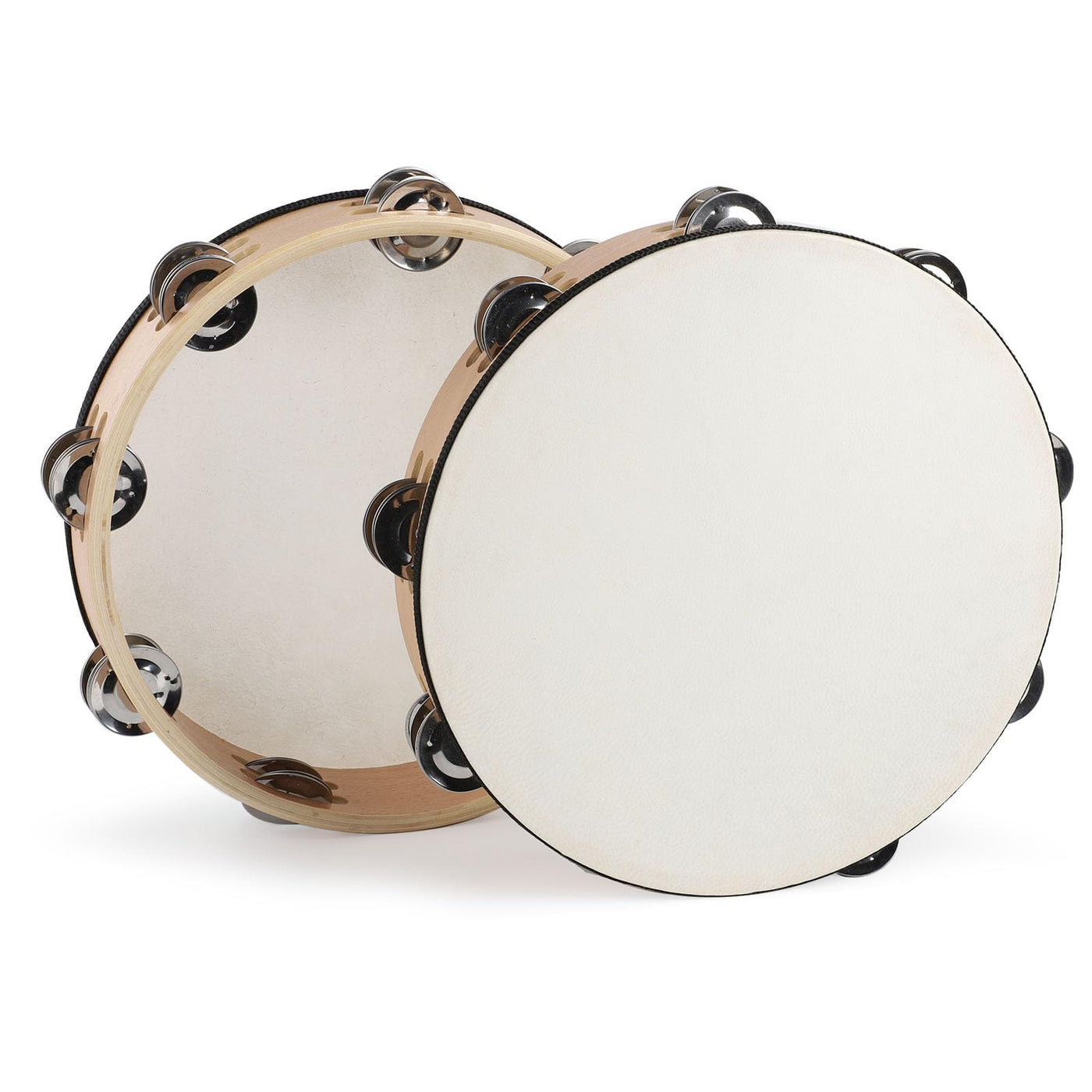 10 Inch Goatskin Tambourine With 8 Pairs of Metal Jingles Hand Held Drum Tambourines for Kids Adults Church Dance Games KTV Party