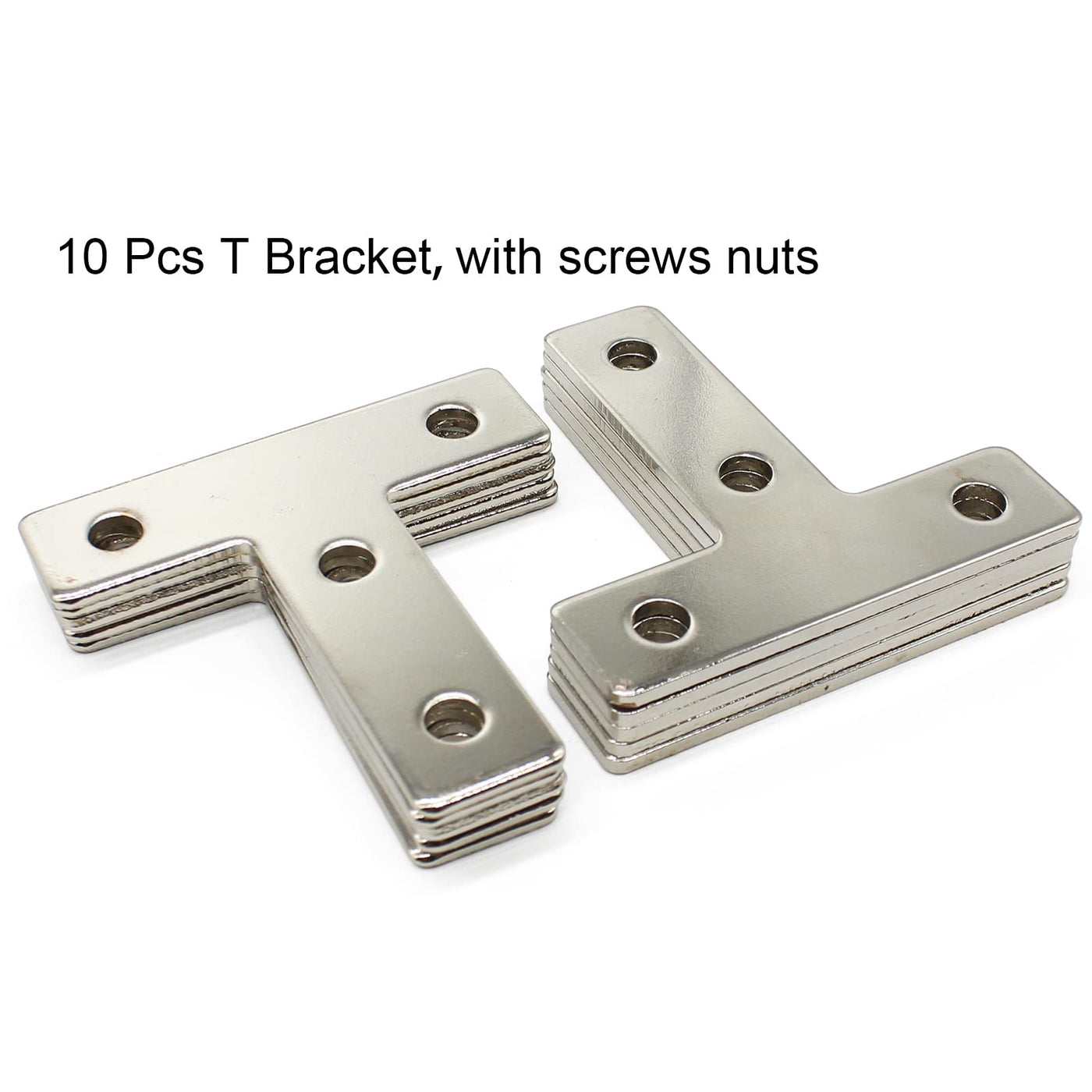 - Package include: 10 sets 2020 series aluminum extrusion T joint plate with screws and nuts, No need for extra purchases to save costs.