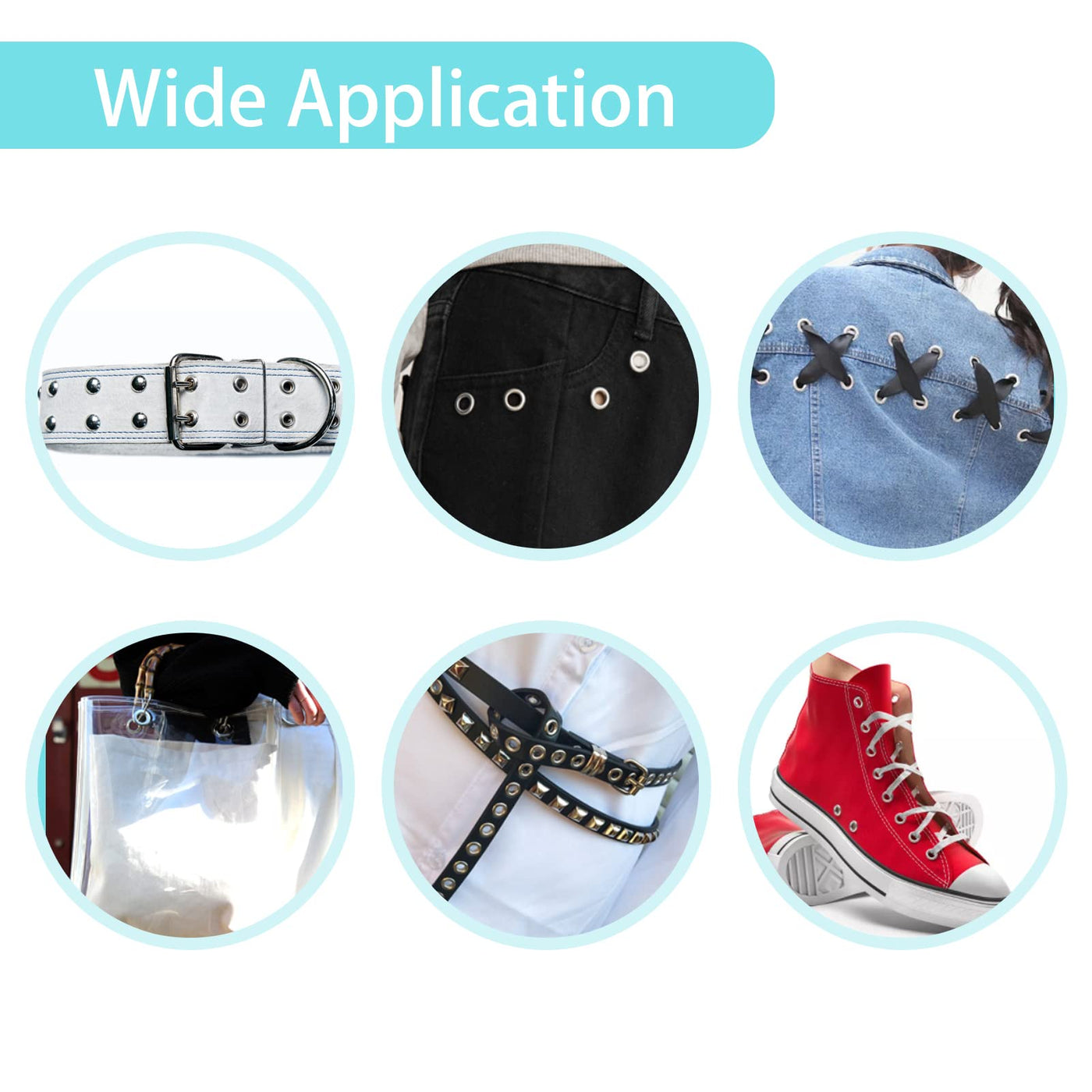 • 5.Wide Application: Whole set eyelets are provided for DIY Crafts to decorate your bags, leather, shoes and fabric etc or repairing clothes, canvas shoes, tents, awnings and so on.
