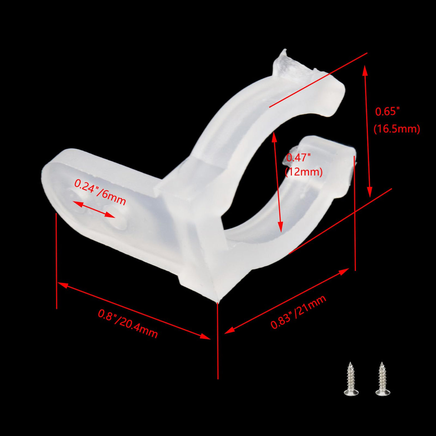 - Clips inner diameter:1/2 Inch(12mm), suitable for 12 ~ 13mm diameter of LED rope light. Diameter of Screw Hole: 2mm.