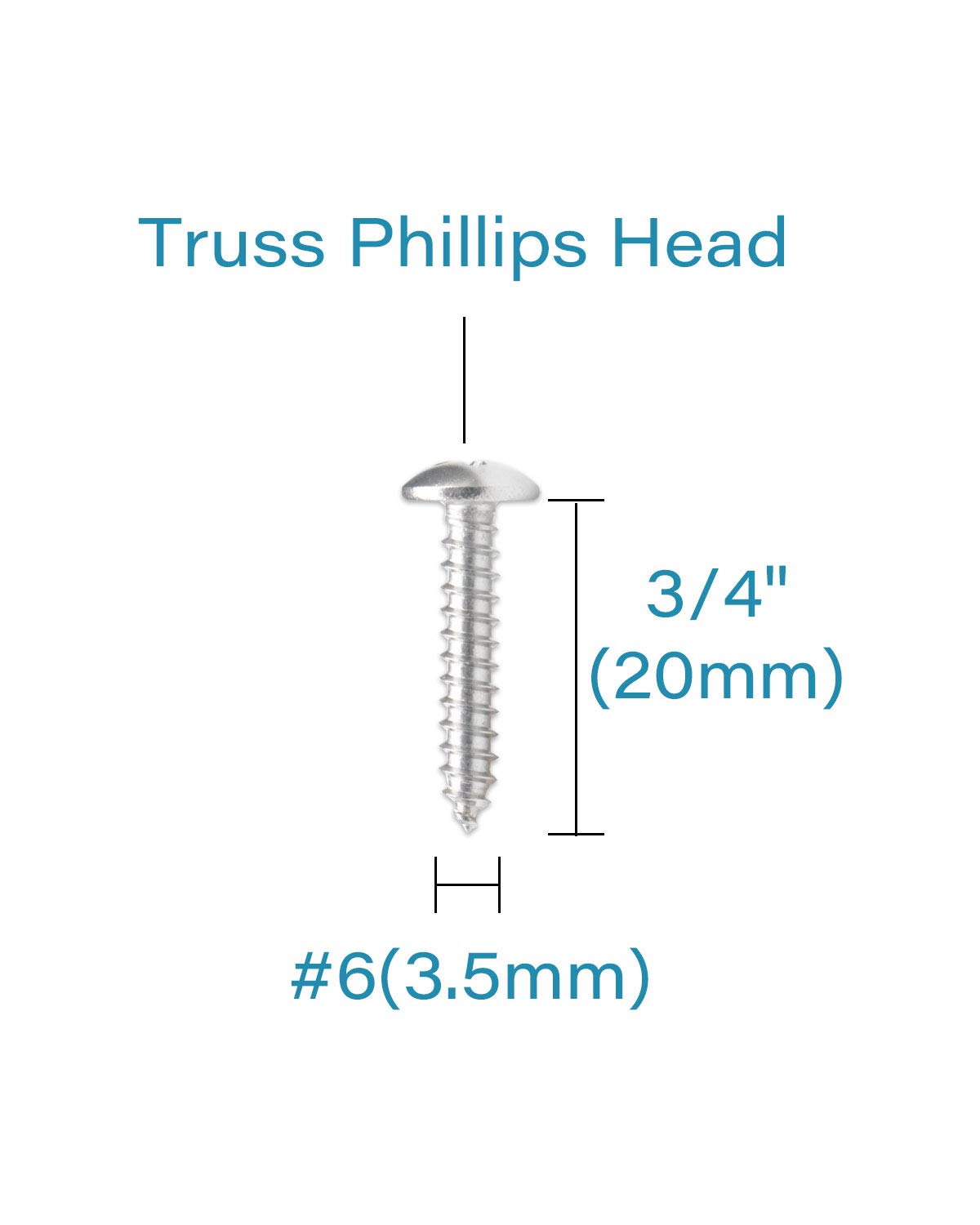100Pcs #6 x 3/4" Truss Head Phillips Wood Screws Stainless Steel 304 Self Tapping Screw | by IMSCREWS