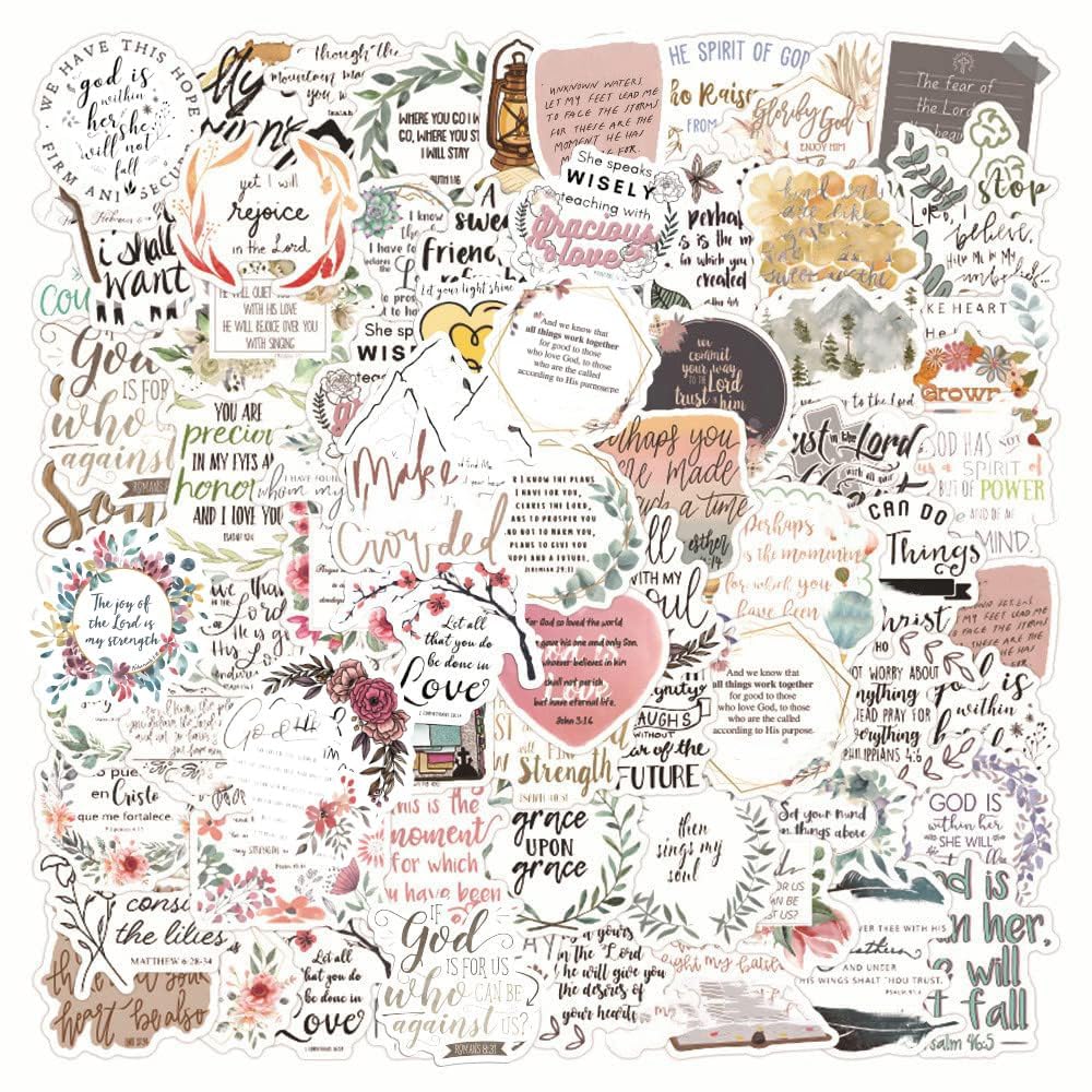 • Motivational Phrases-Bible Verses StickersThere are 100PCS no-duplicate the Bible Verse stickers in each pack. It is about 2-3inches in size, It is a appropriate size to be put anywhere.Cute stickers can bring a lot of fun to your life.