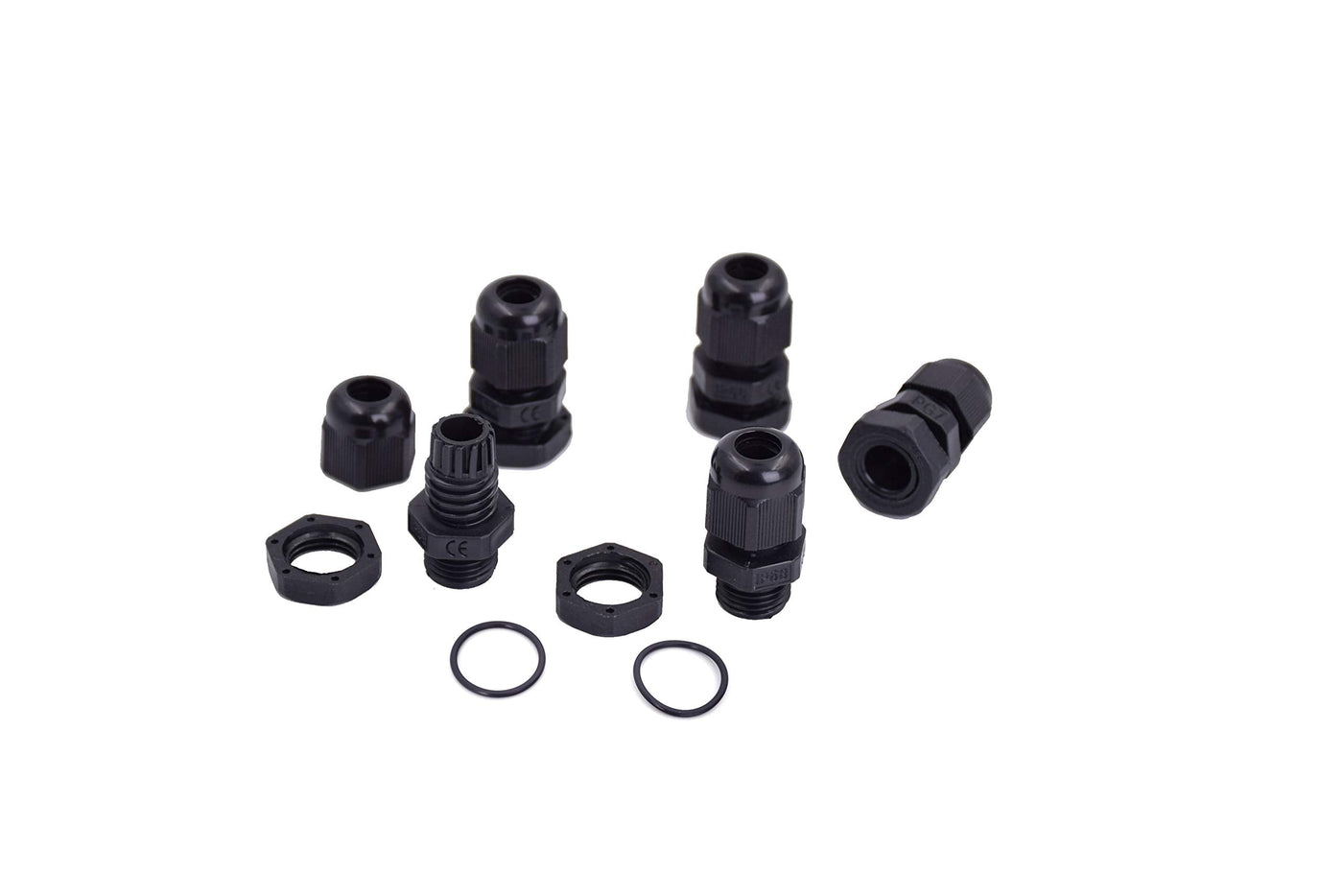 100pcs Waterproof PG7 Cable Gland Connector Black Plastic Adjustable IP68 M12 Thread Cable Gland with Locknut Rubber Ring for 3.5-6mm Wire PG7-100pcs
