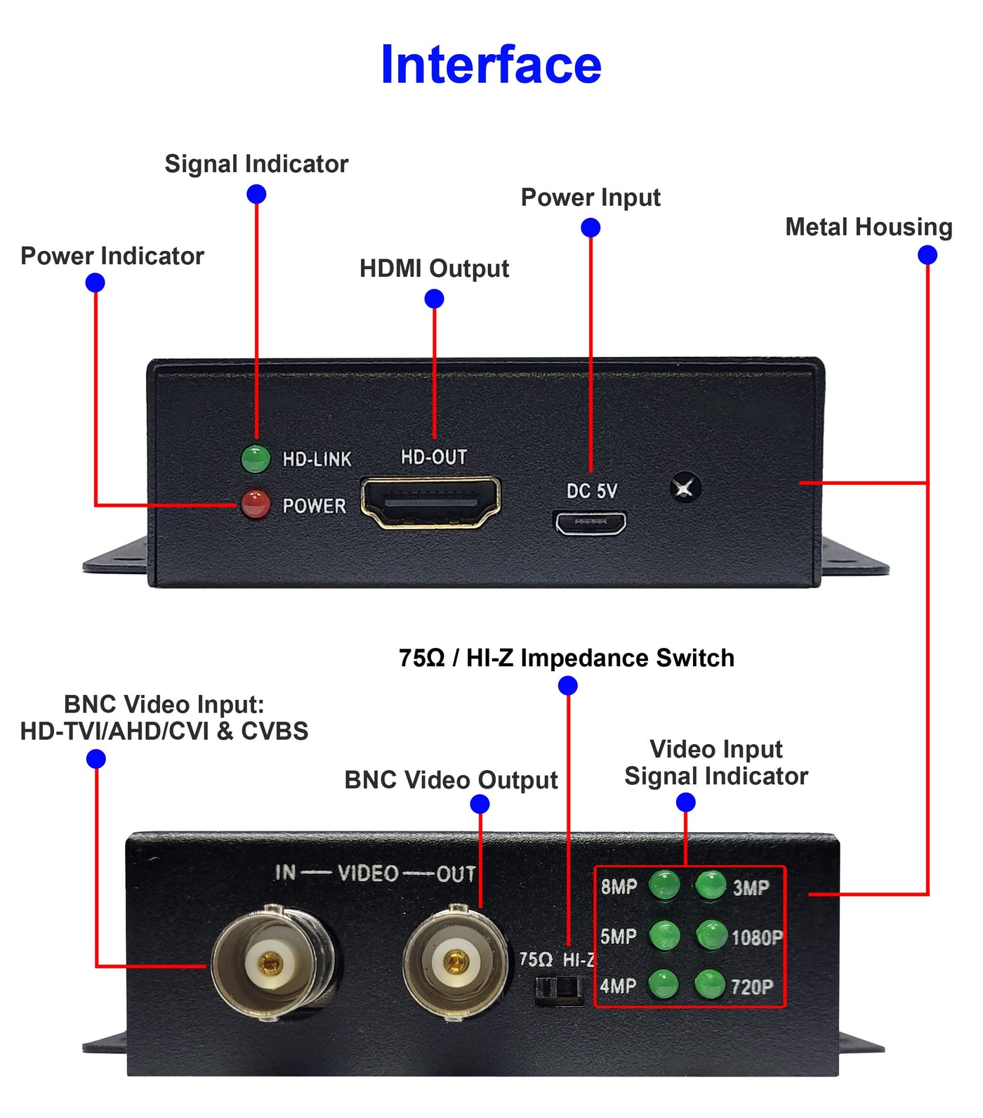 - Plug and Play, no driver needed, LED indicators for power and HD-TVI/AHD/CVI signal source sync. Please don't hesitate to contact our US local tech-support for any further service down the road.