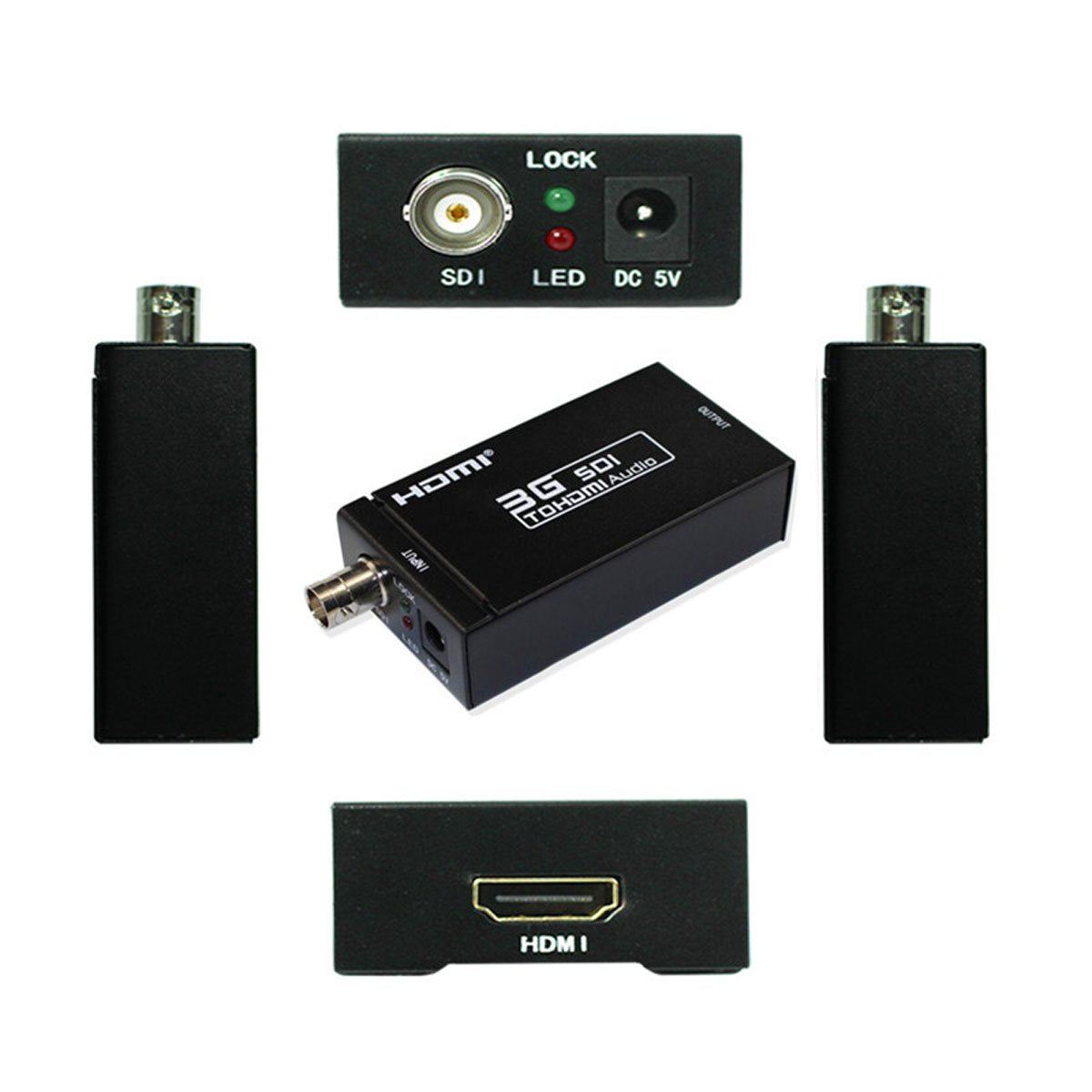 Please note: This sdi to hdmi converter can not support for 480i and 576i, It can not use for SD-SDI Introduction: The MINI SDI to HDMI converter allows HD- SDI and 3G-SDI signals to be shown on HDMI displays while ensuring high bit rates of 2.970 Gbit/s to give you fast signal transmission without any loss. For professionals this means that it is now easier to distribute and extend your 3G SDI signal while giving you the ability to display your work on HDMI displays thanks to the built in HDMI converter. Features: Operation at 2.970Gbit/s, 1.485Gbit/s and 270Mbits/s Supports SMPTE 425M, SMPTE 424M, SMPTE 292M, SMPTE 259M-C Equalized and re-clocked loop output Integrated audio de- embedder for a maximum of 8 channel, 48 kHz audio Conversion from SMPTE 425M level B to Level A 1080p 50/60 4:2:2 10-bit Connect with other units to extend your signal over long distances Please note: This sdi to hdmi converter can not support for 480i and 576i, It can not use for SD-SDI Package 1pcs SDI to HDMI converter 1pcs US power adapter 1pcs Operation Manual