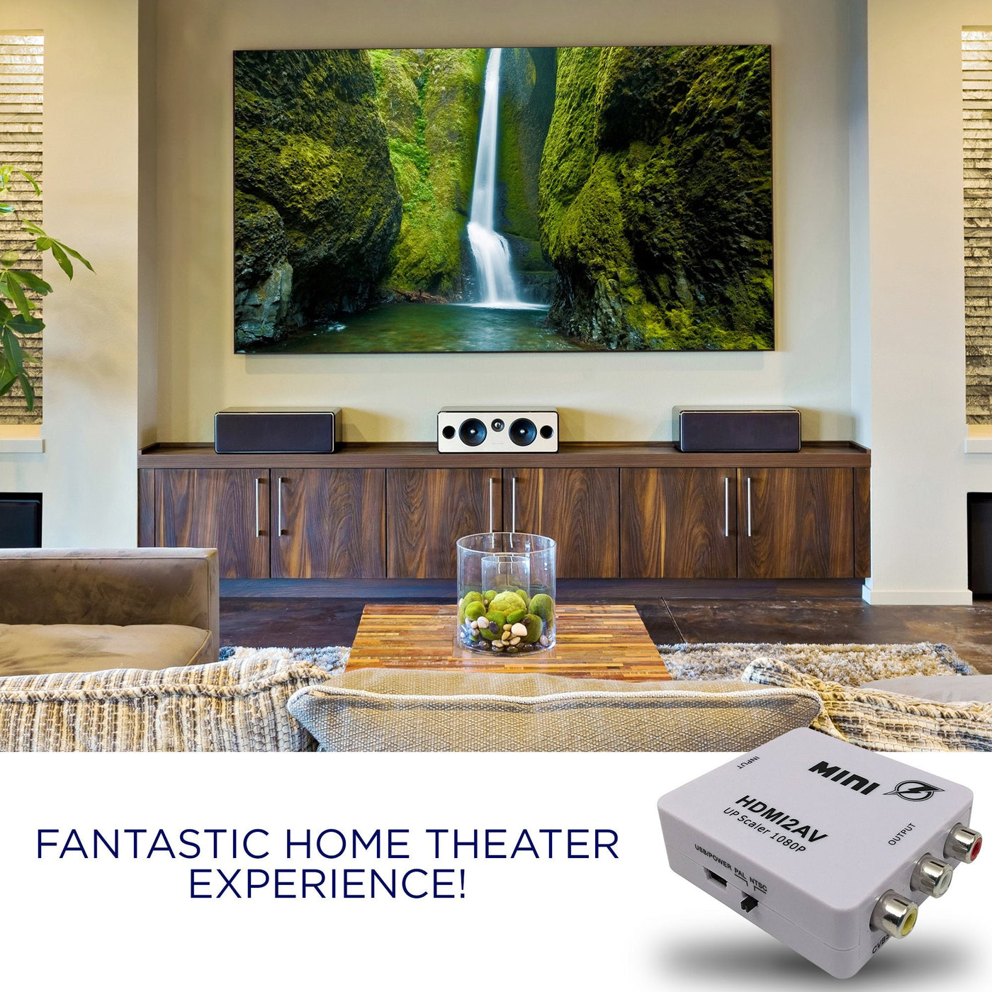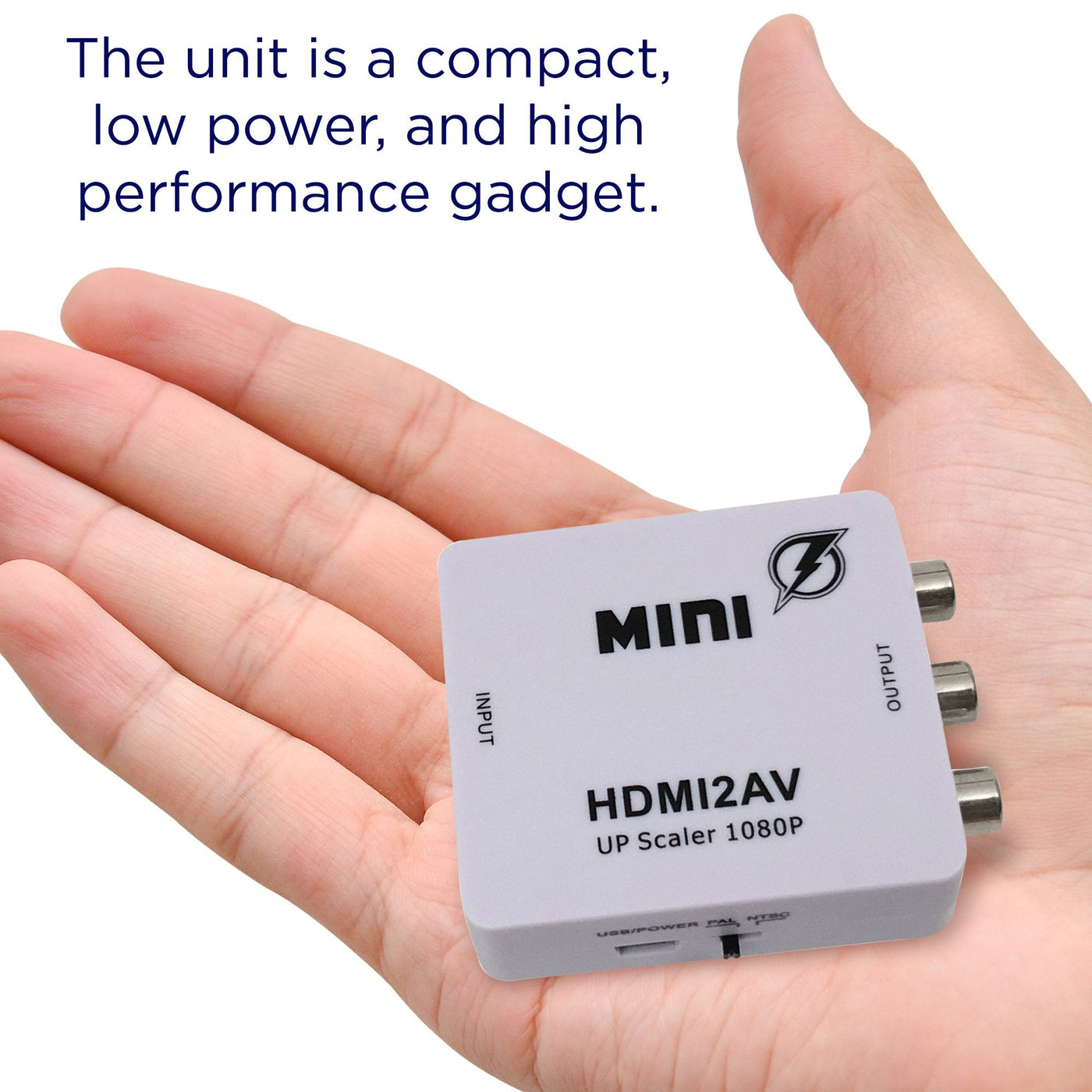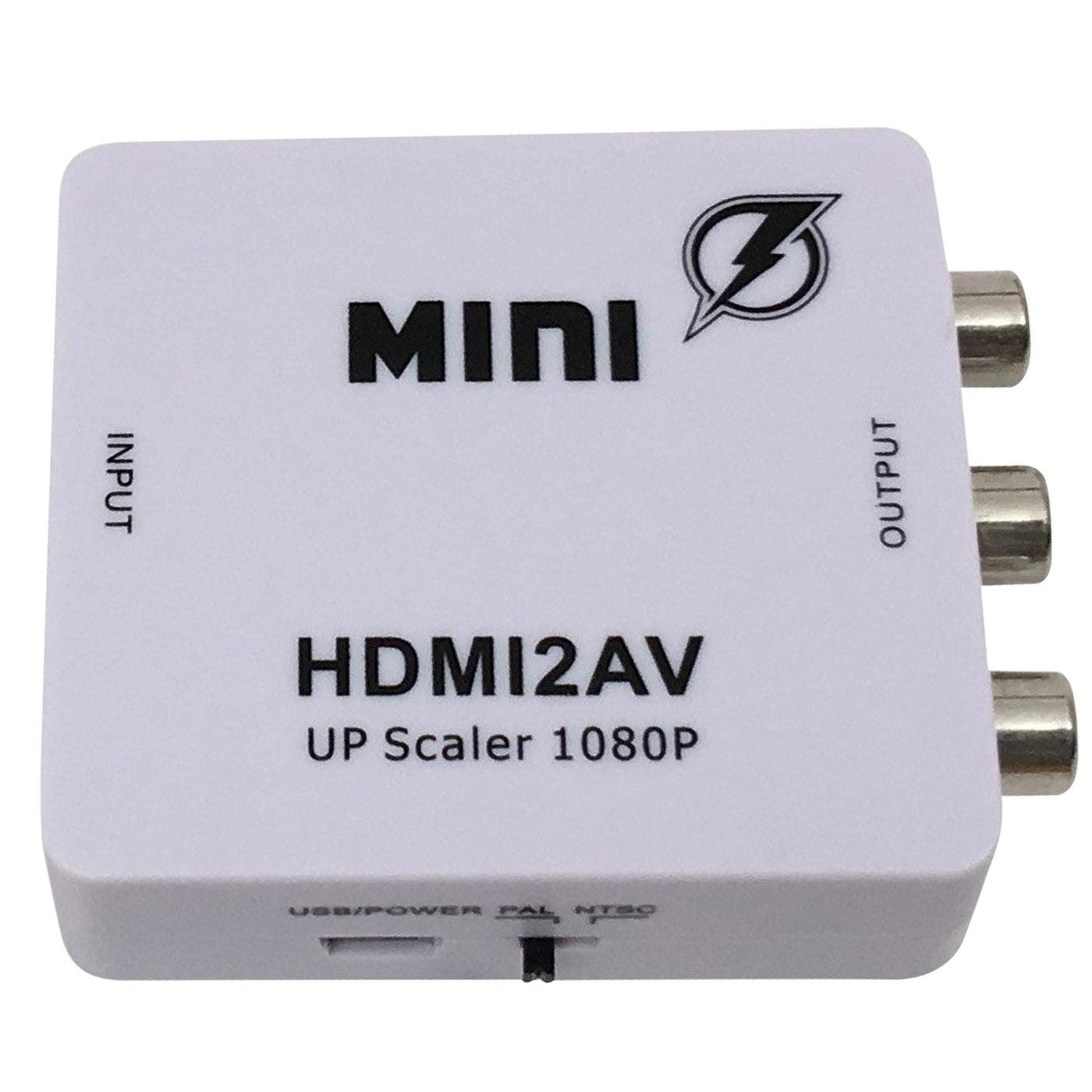 Blue Lightning 1080 HDMI to AV 3RCA CVBS Composite Video Audio Converter 1080p 720p 460p, Connect HDMI PS4/Xbox 360/Apple TV Box/Blu-Ray DVD to Old NTSC Analog TVOur MINI HDMI to AV converter converts HDMI video and audio signal to AV (CVBS) composite video signal and FL / FR stereo audio signal, while supporting DVI system sideline signals. It helps convert the high quality of the HDMI signal into normal CVBS signal (standard-definition, 480i, 576i) which can be played on TV, VHS VCR, DVD recorders, etc. The unit is a compact, low power, and high performance gadget and support NTSC and PAL TV formats with a select switch.Specifications: Input ports: HDMIOutput ports: AV RCA - Composite Video + Audio R/L (Yellow,White,Red)Dimensions: 66 x 55 x 20mmWeight: 40gFeatures: HDMI input format: 480p / 576p / 720p / 1080i / 1080p A/V output format: Supports PAL 576i or NTSC 480i selectable Power/signal LED indicators Powered through USB HDMI1.3 & HDCP compatiblePackage includes:(1) MINI HDMI2AV Video Converter(1) USB Cable(1) Manual Does NOT INCLUDE HDMI Cable A shorter HDMI cable is preferred. A longer cable can reduce the signal strength and decrease the quality.