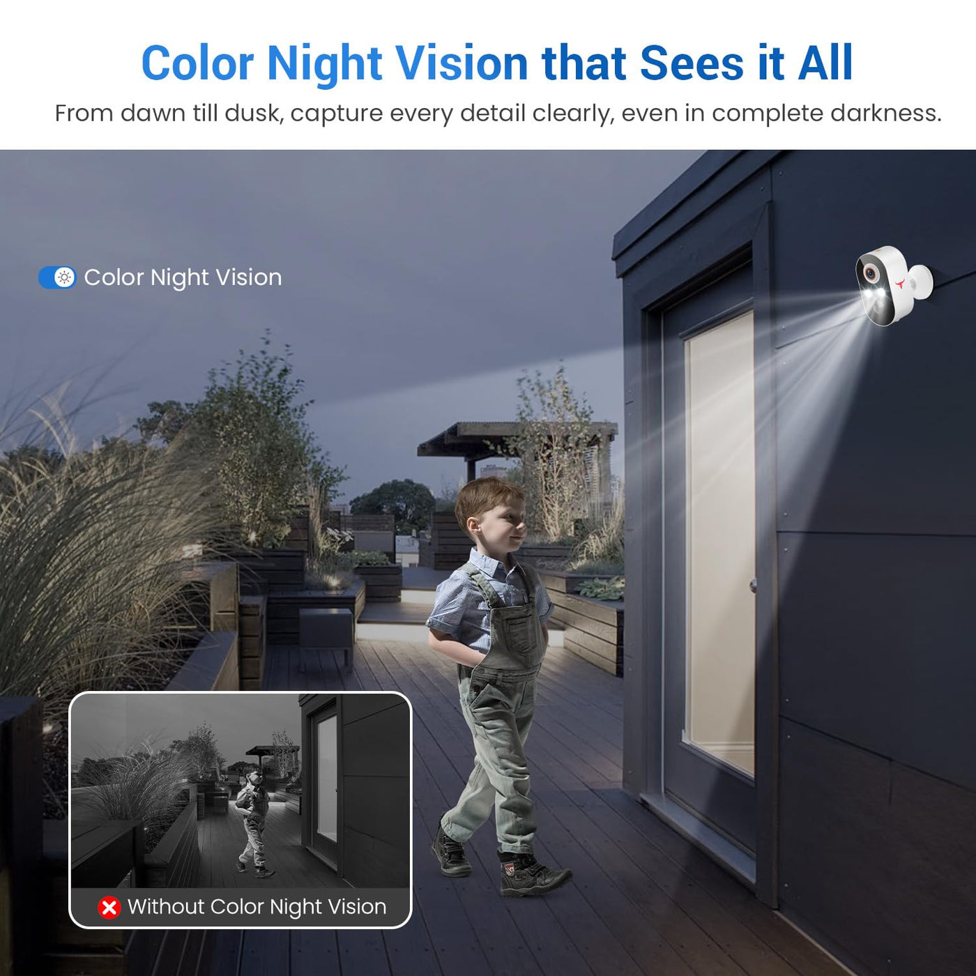 - Vivid Color Night Vision for Enhanced Security: See everything more clearly after dark with color night vision that sharpens facial details and reduces motion blur, ensuring reliable night-time surveillance.