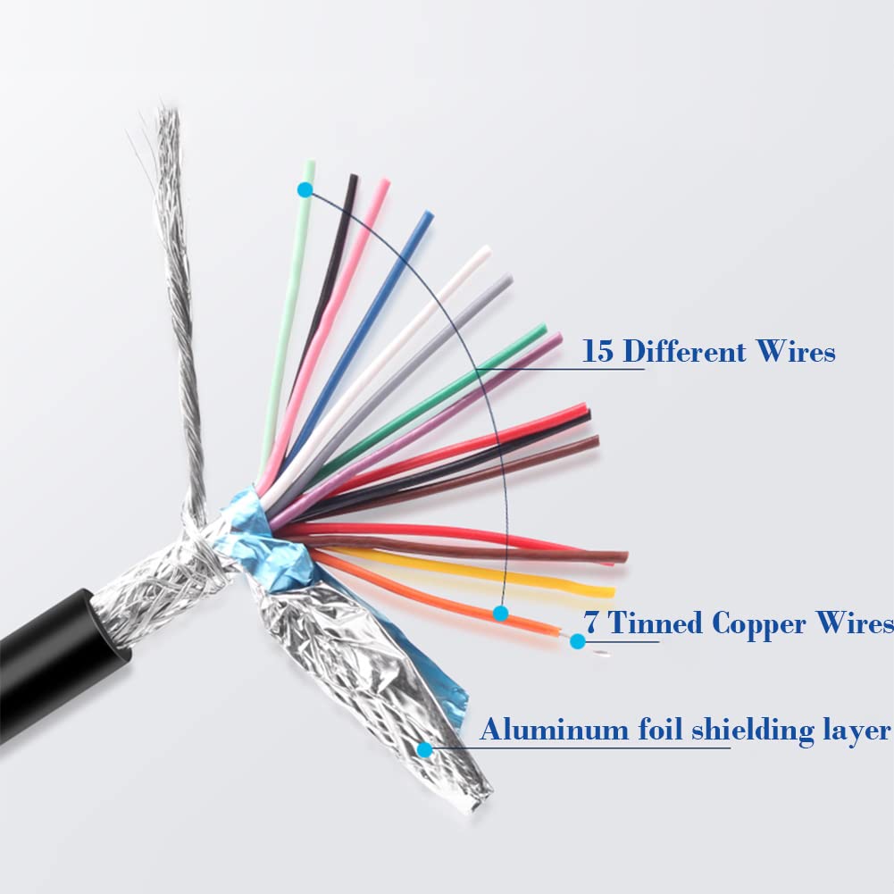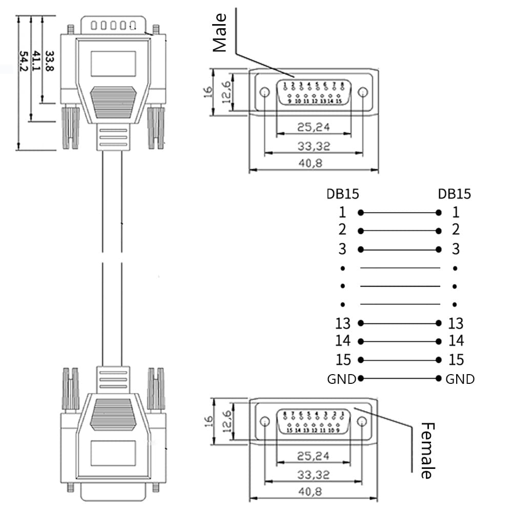 • Anti-interference: Wrapped aluminum foil + high-density braided mesh forms a double-layer shield with strong anti-interference ability. It is pin to pin wired as a DB15 rs232 Straight Through COM cord (pinout :1-1, 2-2, 3-3, 4-4,......,15-15, G-G)