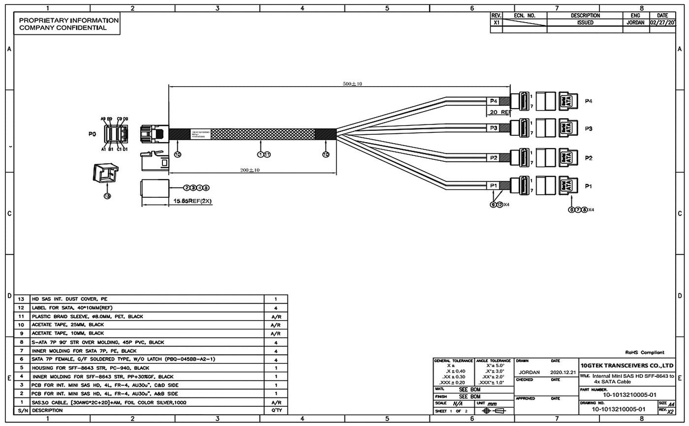 - SFF-8643 is the host; connect to the motherboard or RAID Controller with Mini SAS ports. 4x7Pin SATA is the target; connect to the hard drives with SATA ports.