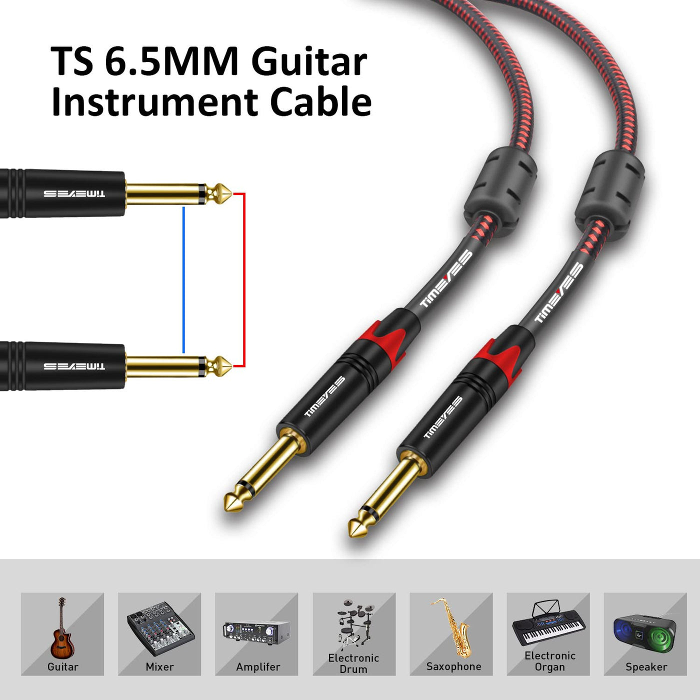 • {UIVERSAL COMPATIBLE}: TIMEYES 6.5mm Cable is ideal for devices with 1/4 Jack such as electric guitar, soundboard mixer, passive speaker, console, studio monitors, bass, amplifier, equalizer, mandolin, electronic drum, keyboard; TIMEYES Cables promise the 18 months after-sale service, if you have any problems about products and services, please contact to us freely