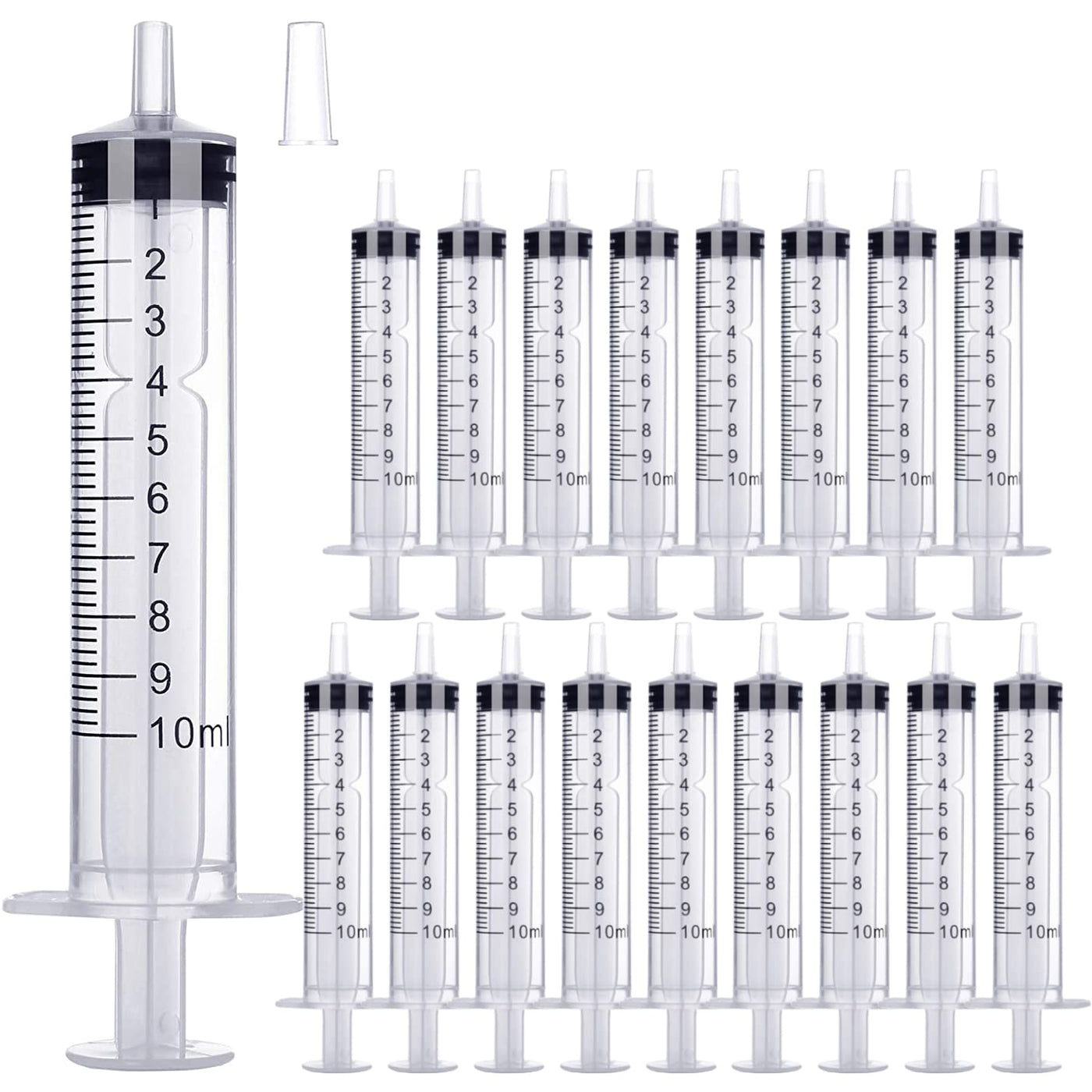 10ml Syringe 20-Pack Plastic 10ml Syringes with Luer Slip Tip, Individually Sterile Sealed, No Needle (10ML)
