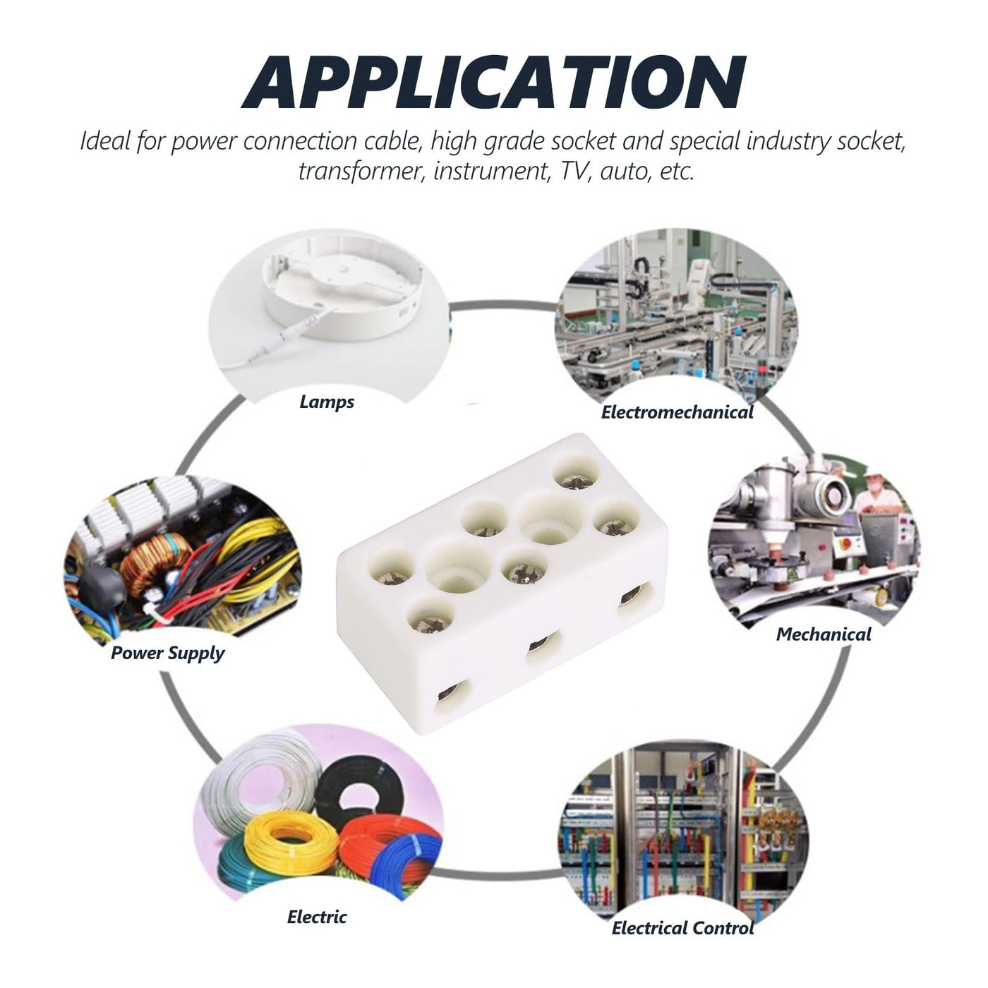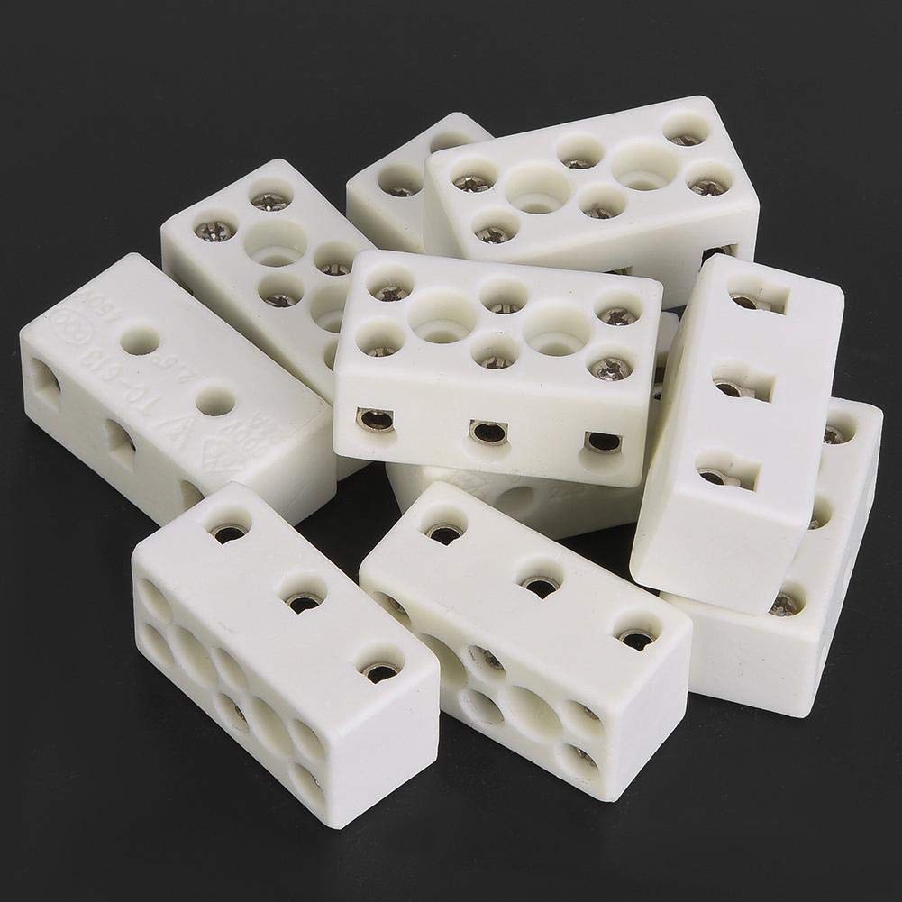 10PCS 3 Way Ceramic Terminal Block 24A Porcelain Terminal Block Wire Connector High Temperature Resistant for Electric Wire Cable 1.32x0.70x0.61in