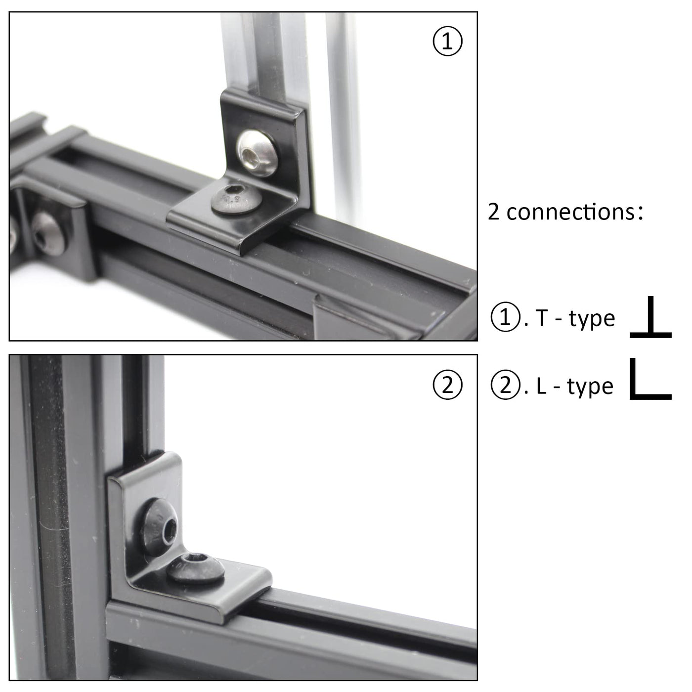 - Note: 2020 aluminum extrusion bracket, It can be connected in two different directions, cross T-shaped connection, or L-shaped connection