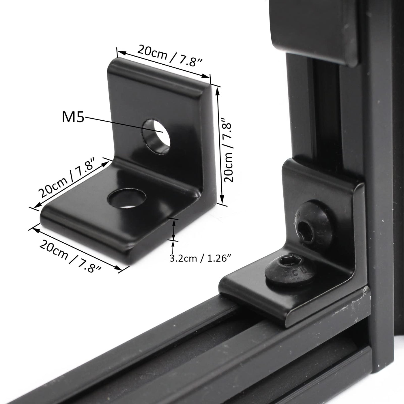 Package Content: 10pcs 2020 Series Aluminum Extrusion Profiles 90 Degree Corner Brackets, 20pcs M5 T Slot Nuts and Bolts 20pcs Carbon Steel Galvanized M5 x 8mm T-slot Nuts, Note: 2020 aluminum extrusion bracket, It can be connected in two different directions, cross T-shaped connection, or L-shaped connection. Thickness is 3.2mm.
