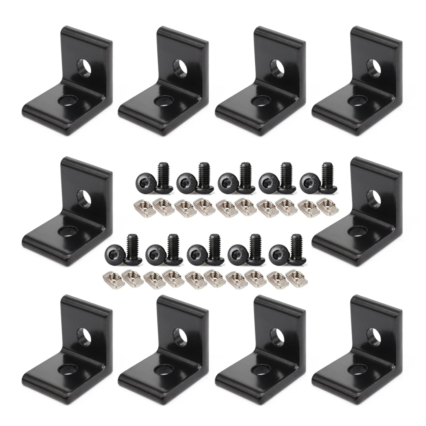 - 2020 Aluminum Extrusion Aluminum Profiles Brackets Set, 10pcs 2020 Corner Brackets Connector, 20pcs T Nuts and 20pcs M5 Hex Screw Bolt for T Slot Rail 6mm T / V Slot 20mm Series Aluminum Rail Accessories