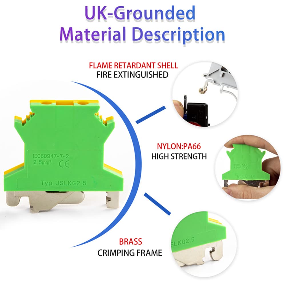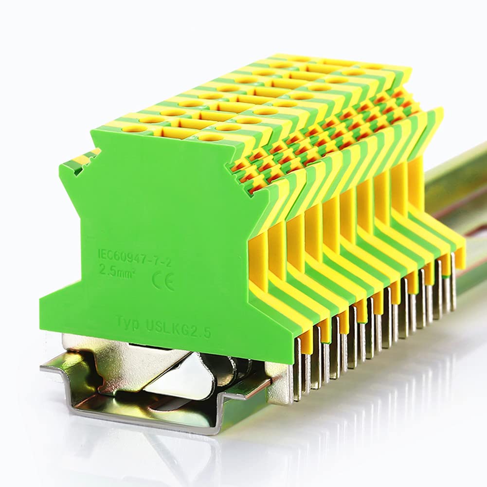 10Pcs DIN Rail Mounted Ground Circuit Connection Terminal Block Screw Clamp Connector (USLKG2.5N) USLKG2.5N