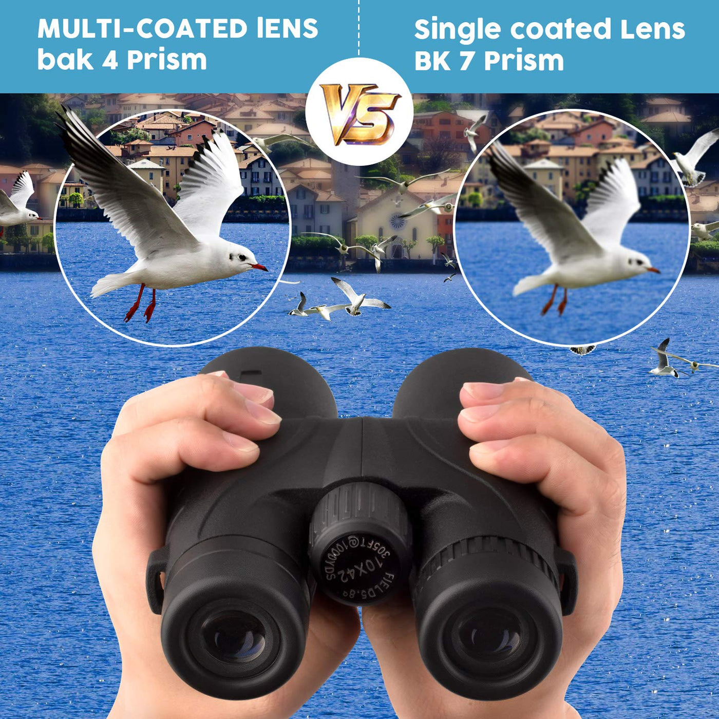 10x42 Binoculars for Adults - Professional HD Roof BAK4 Prism Lens Binoculars for Bird Watching, Hunting, Travel, Sports, Opera, Concert, with Carrying Bag (1.0 lbs)