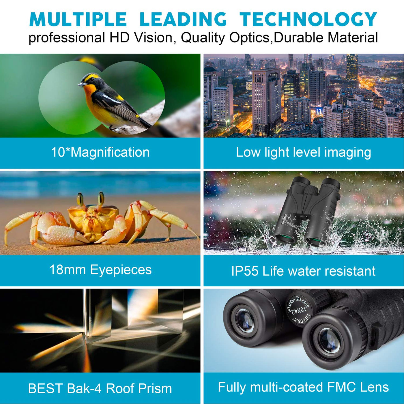 - Professional 10 x 42 HD Binoculars with Wide Field of View Offering 10 x magnification with 42 mm objective lens, wide field of view and 1000-yard range let you look further and wider with HD clarity suitable for both indoor and outdoor activities like bird and scenery watching, hunting, travel, sports, and concerts.