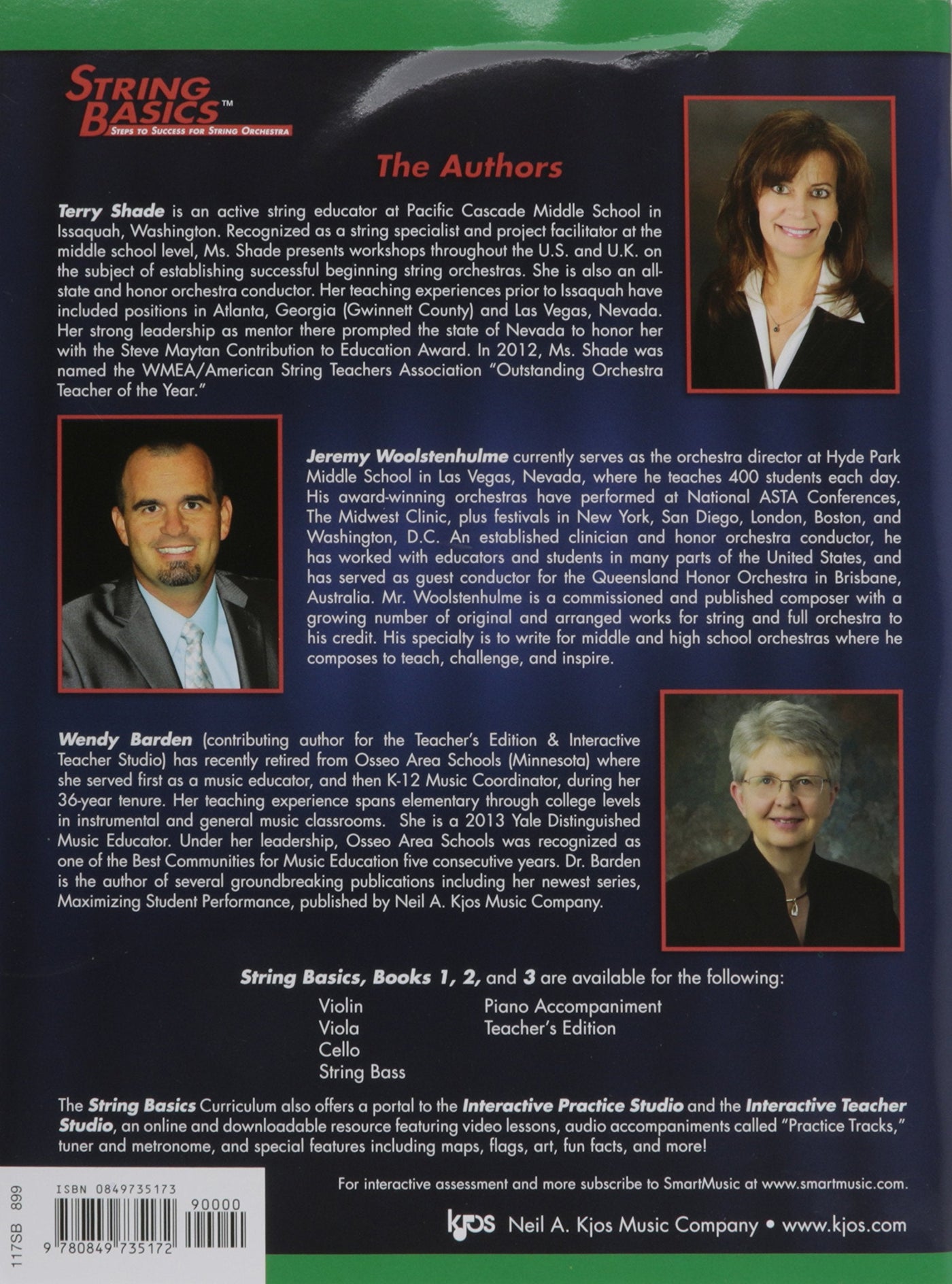 String Basics Book 3 by award-winning authors Terry Shade, Jeremy Woolstenhulme, and Wendy Barden, continues with a strong pedagogy and step-by- step sequences of instruction preparing students for grade 3 performance literature and beyond. Book 3 opens with independent instrument tuning, then a critical review section allows students to be prepared for shifting & position work, new major & minor keys, the chromatic scale, and advanced note values & rhythm combinations. All are reinforced with technical exercises and a wide sampling of classical and cultural music. Book 3 concludes with vibrato development exercises specially designed for heterogeneous classrooms. Like with all String Basics method books, Book 3 features the popular Interactive Practice Studio and Interactive Teacher Studio, accessible on any Windows or Mac computer. Each student book and Teacher s Edition comes with a DVD containing video lessons and accompaniment Practice Tracks (also provided in the IPS and ITS). Read more