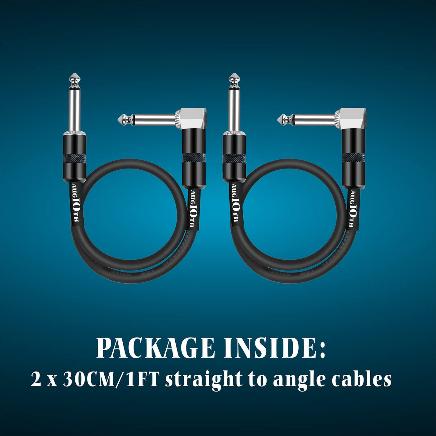 12 Inch Guitar Patch Cable 30 CM Performance Guitar Effect Pedal Cables Straight to Angled 2Pack