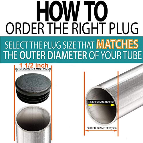 - HOW TO FIT: These round tubing end caps fits 1-1/2" OD round tubing (1.5 inch OUTSIDE diameter) with INSIDE hole diameters (ID) from1 1/4" To 1 7/16 (1.25" to 1.43") and wall thickness of .040 - .125" (10-20 gauge) Steel Pipe. ** Measure Carefully! ** PLUGS WILL NOT FIT 1 1/2" OPENING