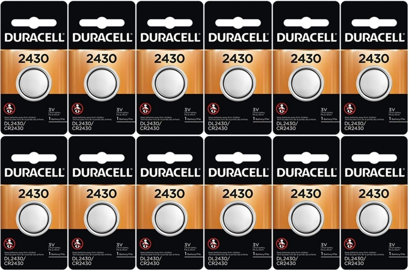 12-Pack Duracell 2430 Batteries 3.0 Volt Lithium Coin Button