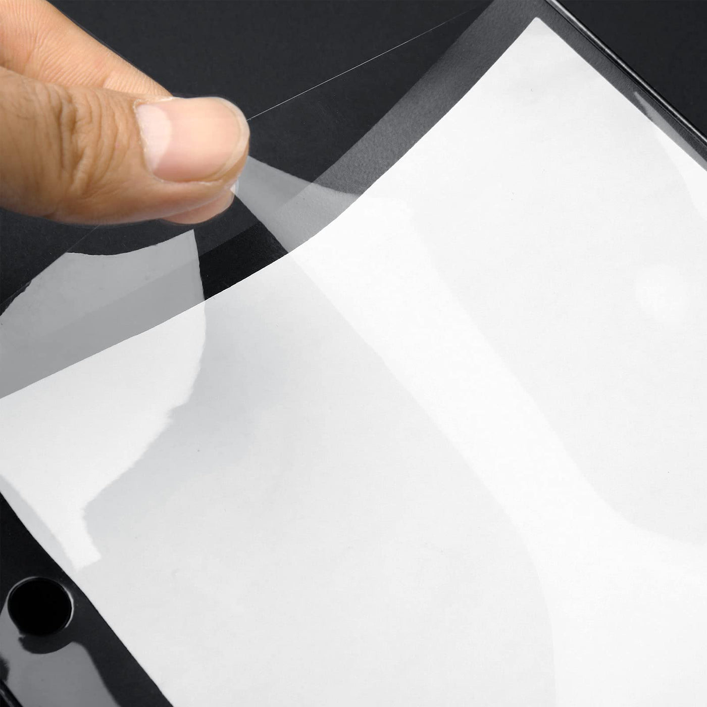 12 Pieces Flip Folder Pages Flip Folio Marching Band Music Files Holder Sheet Musical Flip Folder with 2 Holes 7.5 x 6.3 Inches PVC Waterproof Window Pages for Music Files (Black, Single Side) Black