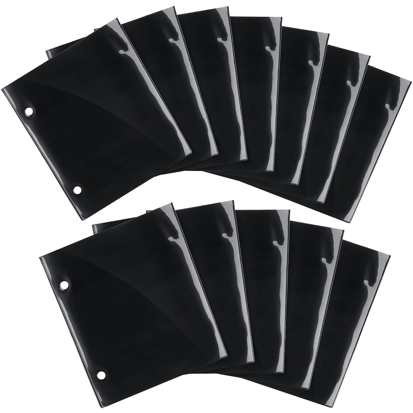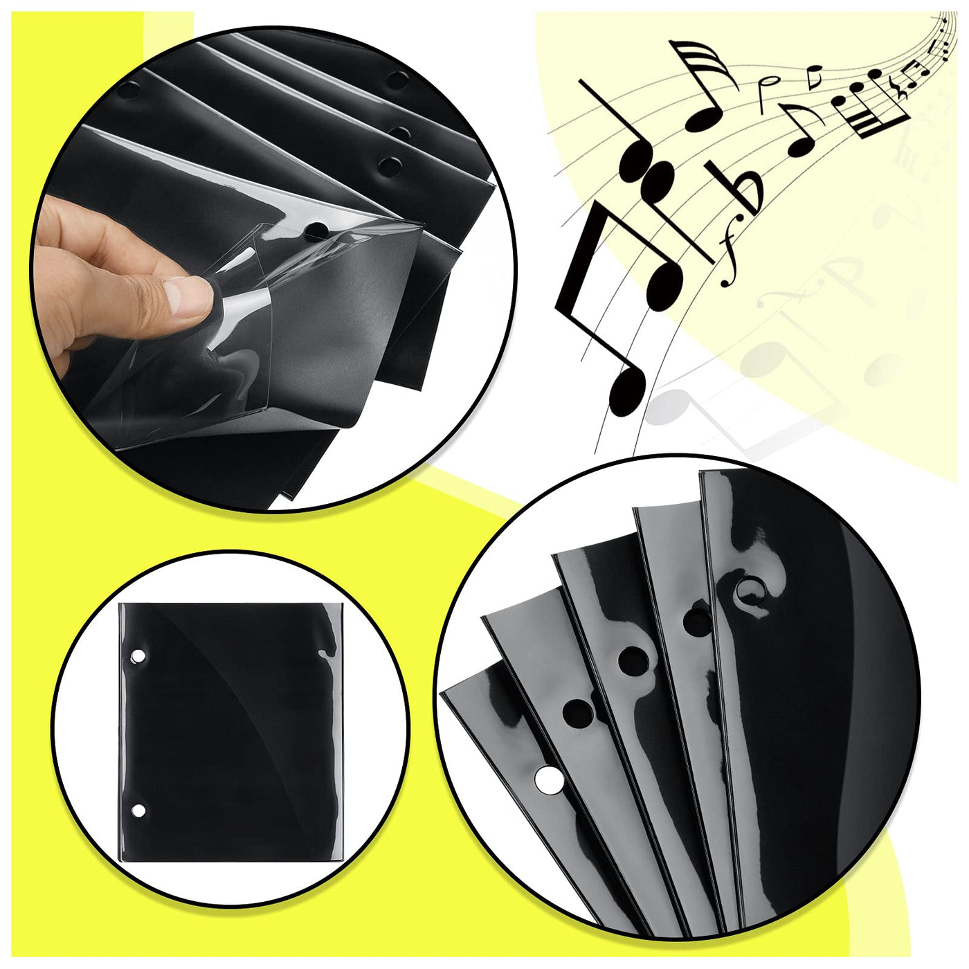 12 Pieces Flip Folder Pages Flip Folio Marching Band Music Files Holder Sheet Musical Flip Folder with 2 Holes 7.5 x 6.3 Inches PVC Waterproof Window Pages for Music Files (Black, Single Side)