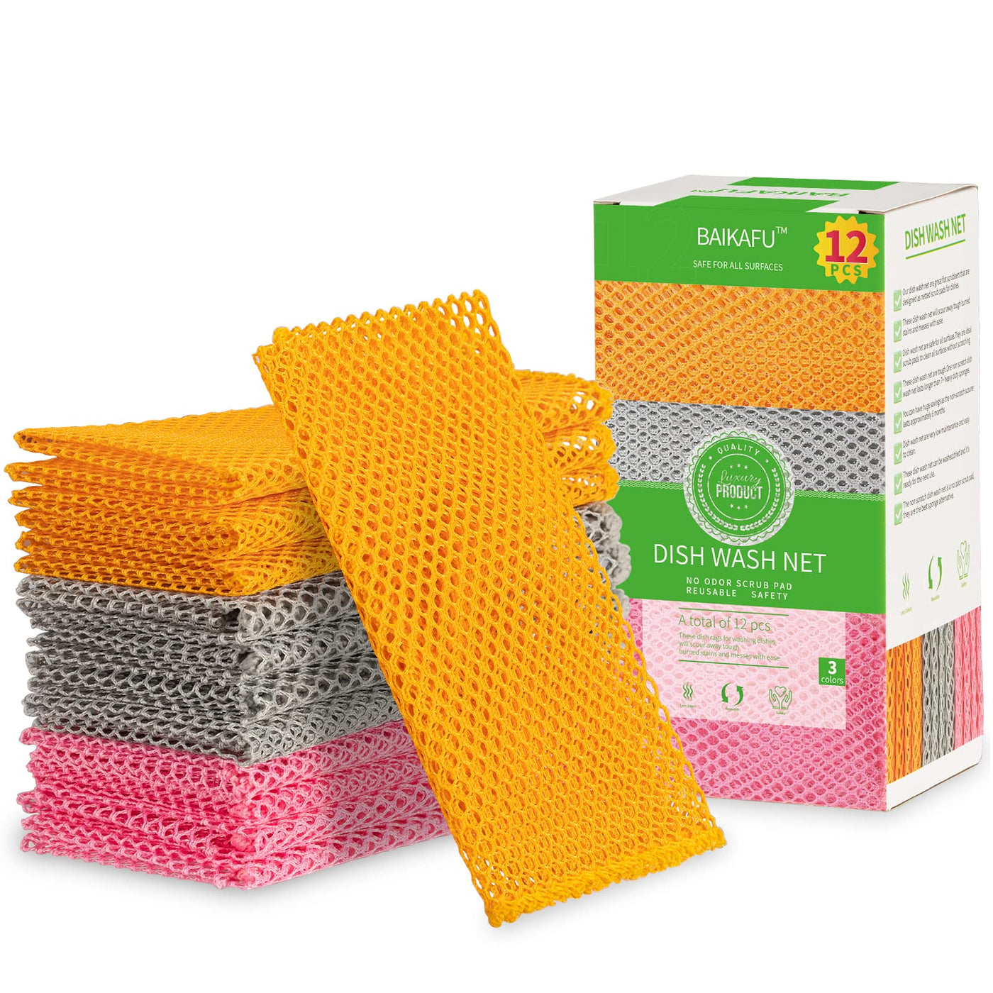 12Pcs Dish Wash Net,Innovative Mesh Cloth,Ultra Durable Non-Scratch Dish Rags for Washing Dishes,100% Odor Free / Quick Dry,Perfect Scrubber,Dish Sponges for Washing Dishes Yellow/Pink/Gray