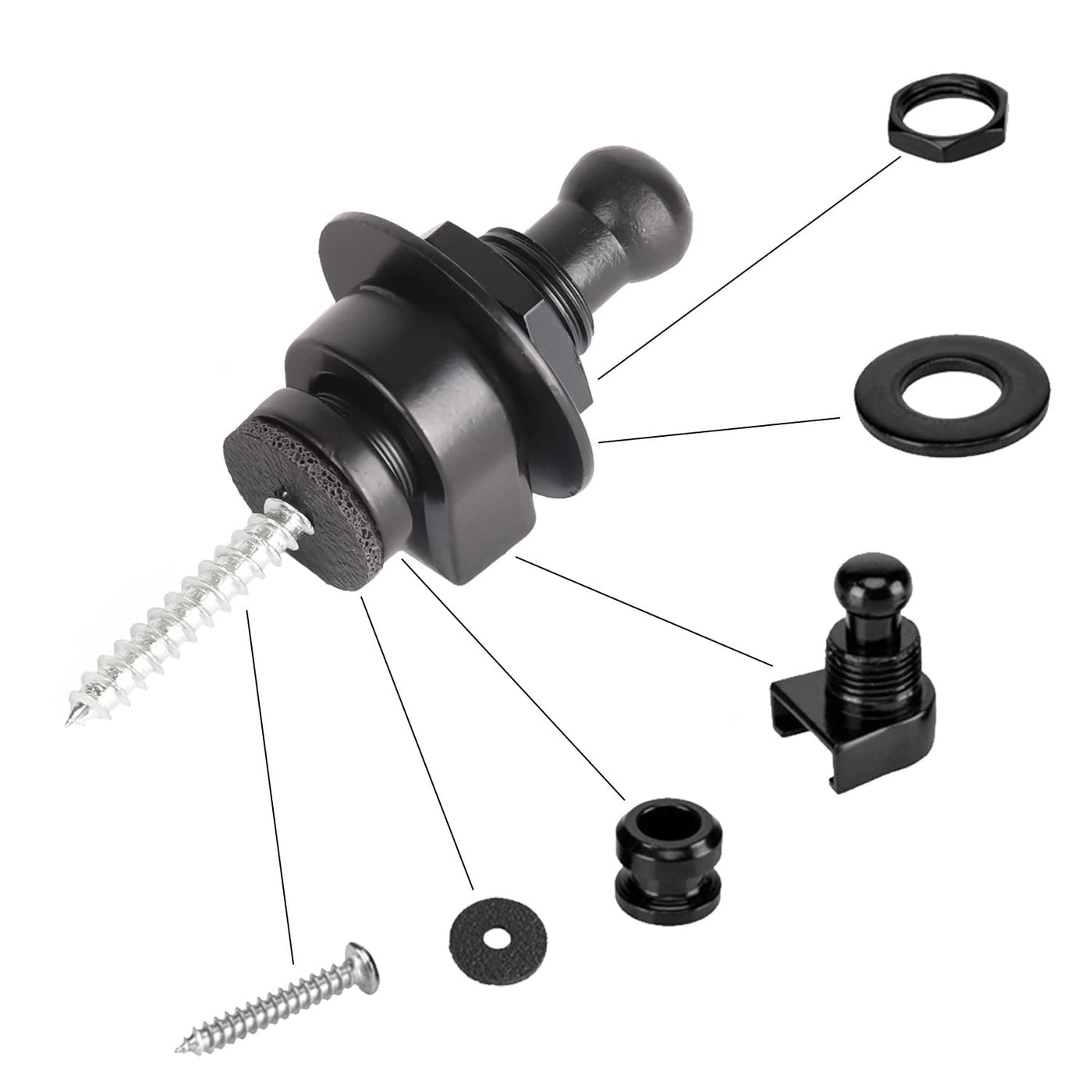 - Material- These guitar strap buttons are made of premium metal, durable and sturdy. Adopting electroplating process, with glossy and smooth surface, can be used for a long time. Ingenious design, superb materials and outstanding quality, durable and lightweight, for decades the most popular strap lock system for guitar and bass.