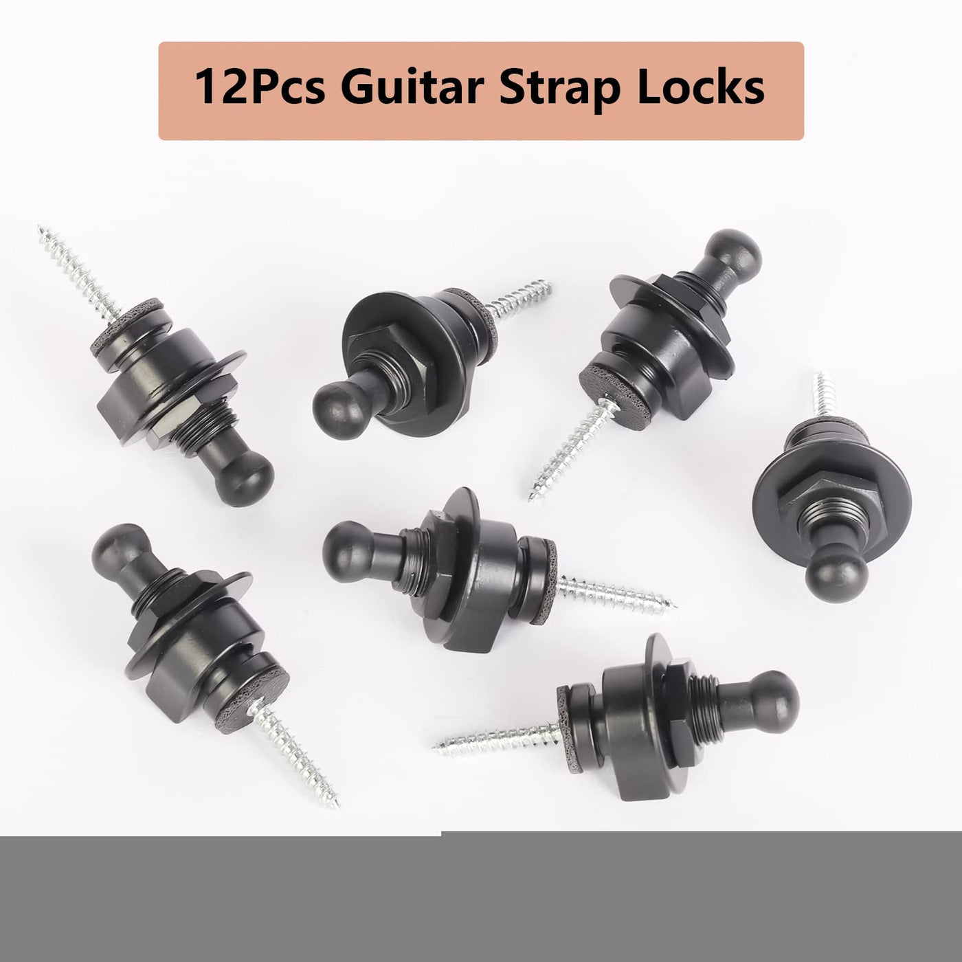 12Pcs Guitar Strap Locks and Buttons, Guitar Strap Locks Set Guitar Strap Lock Buttons, Metal Guitar Strap Buttons Locks, Metal Button Security Straplock for Electric Acoustic Guitar, Bass, Ukulele