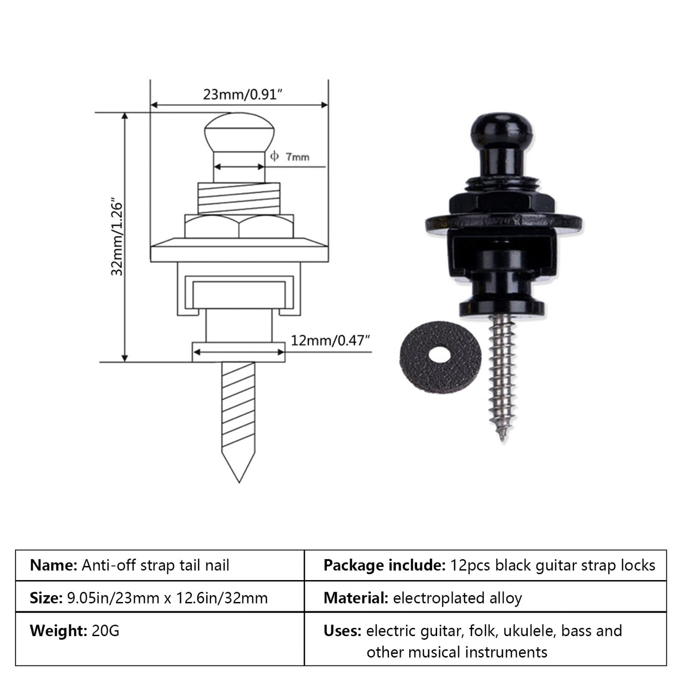 - Package Content- You will receive 12pcs guitar strap buttons.Size 2.3*1.2mm/ 0.9x0.5 inches