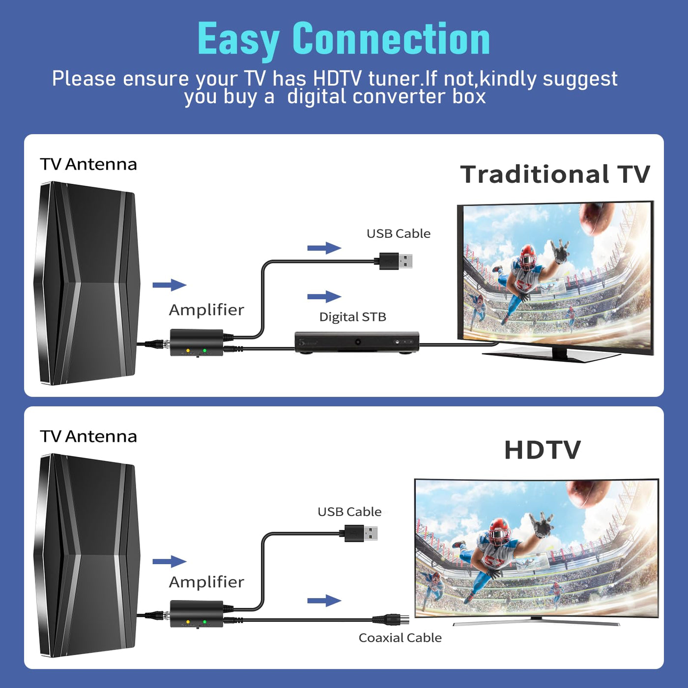 - Professional Team within 24 HRS: lf you have problems with our HDTV Antenna, just contact us at any time, our professional after-sales team will provide you satisfied solution. Just enjoy our high-quality product with confidence