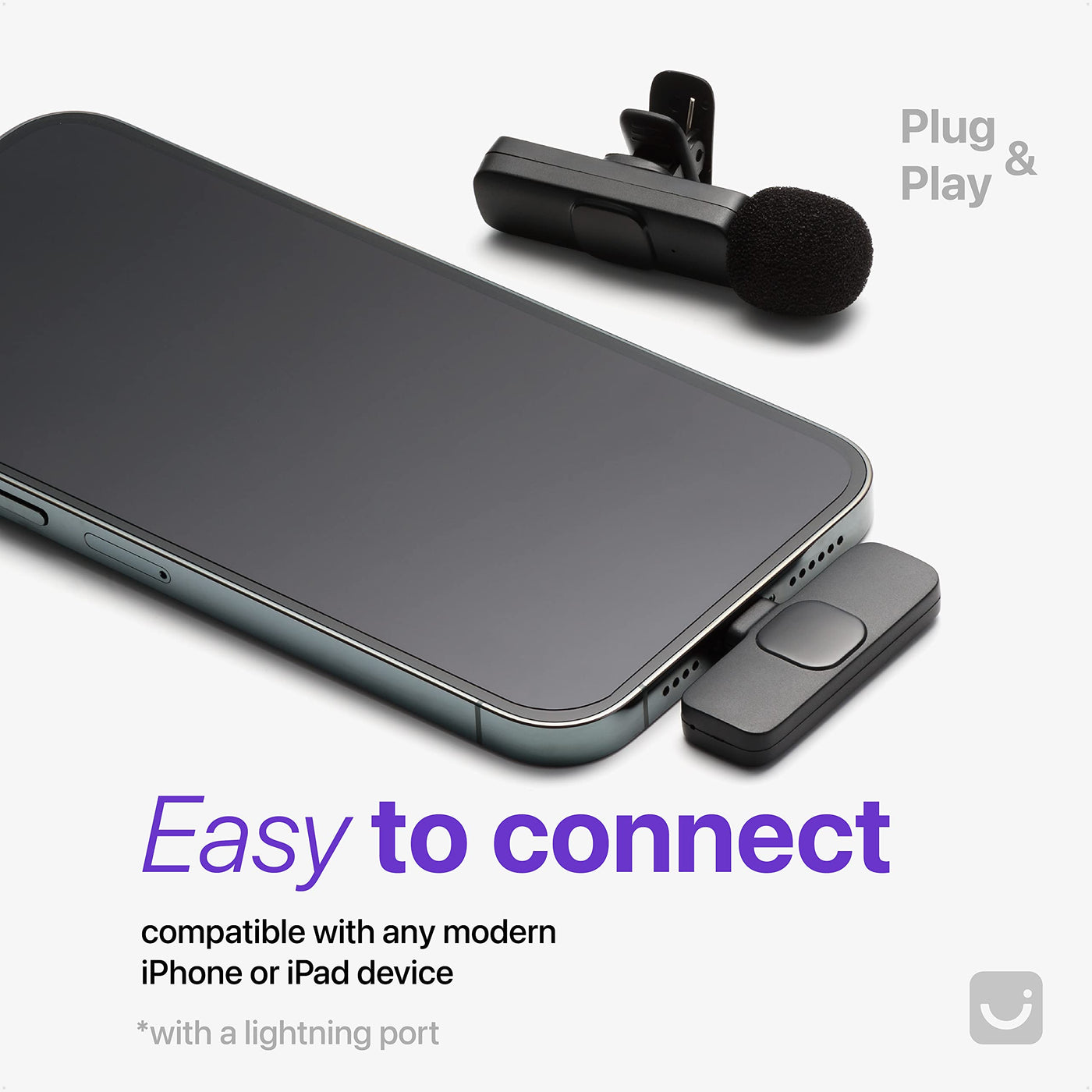 2 Pack Wireless Microphone for iPhone, iPhone Mic, Lavalier microphone for iPhone, Mini microphone iPhone, YouTube microphone, iPhone microphone for video recording, Lapel Mic, Lav mic for iPhone